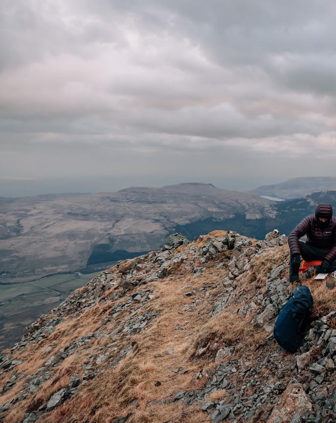 Durante el recorrido, la gestión del equipo, la comida y la hidratación fue clave. Fernanda cargaba una mochila ligera pero cuidadosamente pensada: “Llevaba un pantalón y una chaqueta Goretex más fina, una chaqueta de Primaloft, una camiseta de manga larga, un pantalón ligero, un par de calcetines extra y ropa interior. Esto era ropa para después de correr o cuando llovía. Además de un frontal Nao Petzl, un frontal más pequeño de emergencia, un buff, un gorro y la ropa de correr que fue la misma todos los días. También llevaba medicamentos y botiquín con Compeed para las ampollas, yodo, vaselina, crema solar y mascarilla para el pelo. Una GoPro, mi iPhone, algunos pequeños cortes de mapas y cables. De 1 a 3 litros de agua/ electrolitos, un bocata enorme, más barritas energéticas, chocolate y patatas fritas.” Se alimentaba con lo que encontraba en refugios o pueblos, y recogía agua en cascadas,