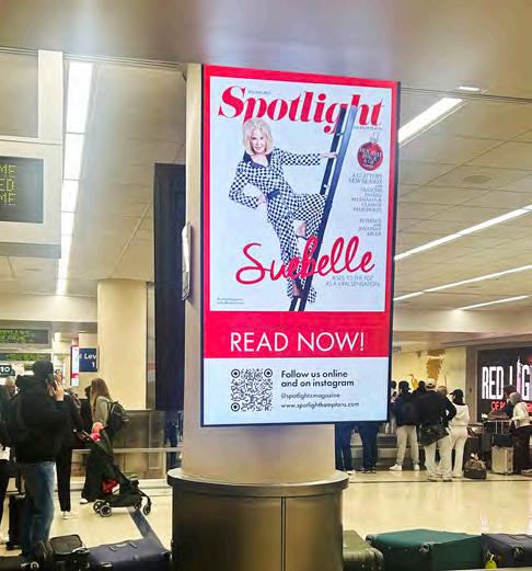 For the launch of our holiday issue last December, Spotlight took over the screens of Palm Beach International Airport for two weeks. Travelers were treated to the sight of online sensation Suebelle as they awaited their suitcases at baggage claim!