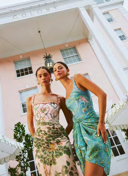 The Colony Hotel has joined forces with Agua by Agua Bendita and de Gournay for a limited-edition swimwear and beachwear collection. The capsule, inspired by the hotel lobby’s iconic wallpaper, includes a one-piece swimsuit, bikini, pareo, and a mini dress, and can be found in person at the Colony and online at thecolonyedit.com and aguabyaguabendita.com.