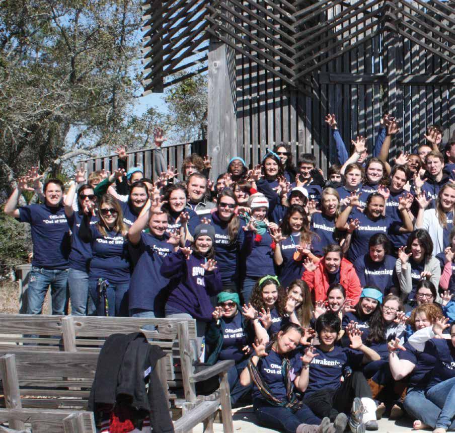 one hundred nine students participated in the awakening retreat, and 31 seniors were officially dubbed “out of shaPe!” Campus ministry hosted the annual retreat in Gulf shores, ala.