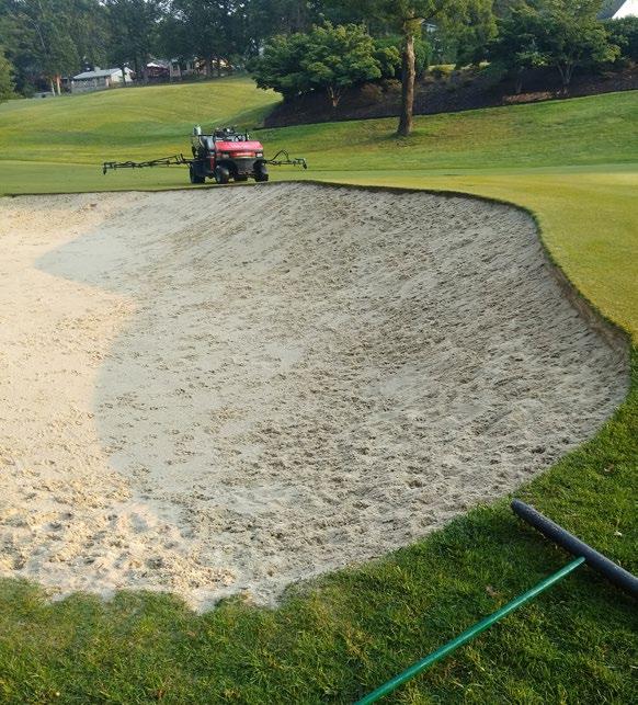 reasonable chance to make a good shot. The red foxes that live on the course and in surrounding neighborhoods seem to love playing in the bunkers and digging holes on the slopes. We diligently fill those holes and try to pack the sand as best we can, but invariably, these spots are somewhat soft and can result in a ball plugging. We try to deter the foxes by putting ground cayenne pepper where they dig most often (you’ll notice the orange stained sand), with mixed results. For your part, please enter and exit the bunkers from the flattest area you can and avoid stepping on slopes.