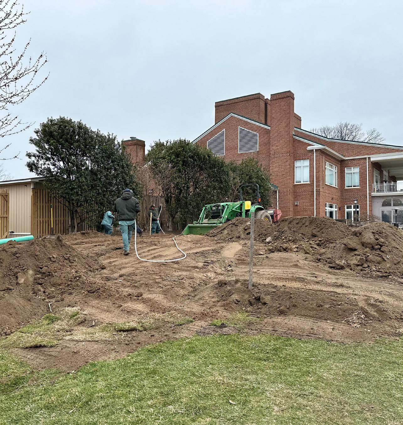 Another big project taken on recently is the creation of a large, level area behind the Clubhouse. We removed the square of asphalt and began adding soil to create a multi-use space for the Club. Not only will it provide a good space for tents used during various functions, but after establishment it will be maintained at tee height of cut, thus having a smooth, firm surface suitable as a “Tiger Tee” for hole #10 during big golf events or possibly even the occasional bocce ball or croquet tournament. Steve is always looking for ways to making the Member experience a little bit better, and this is another good example of the Club’s different departments working together for that purpose.