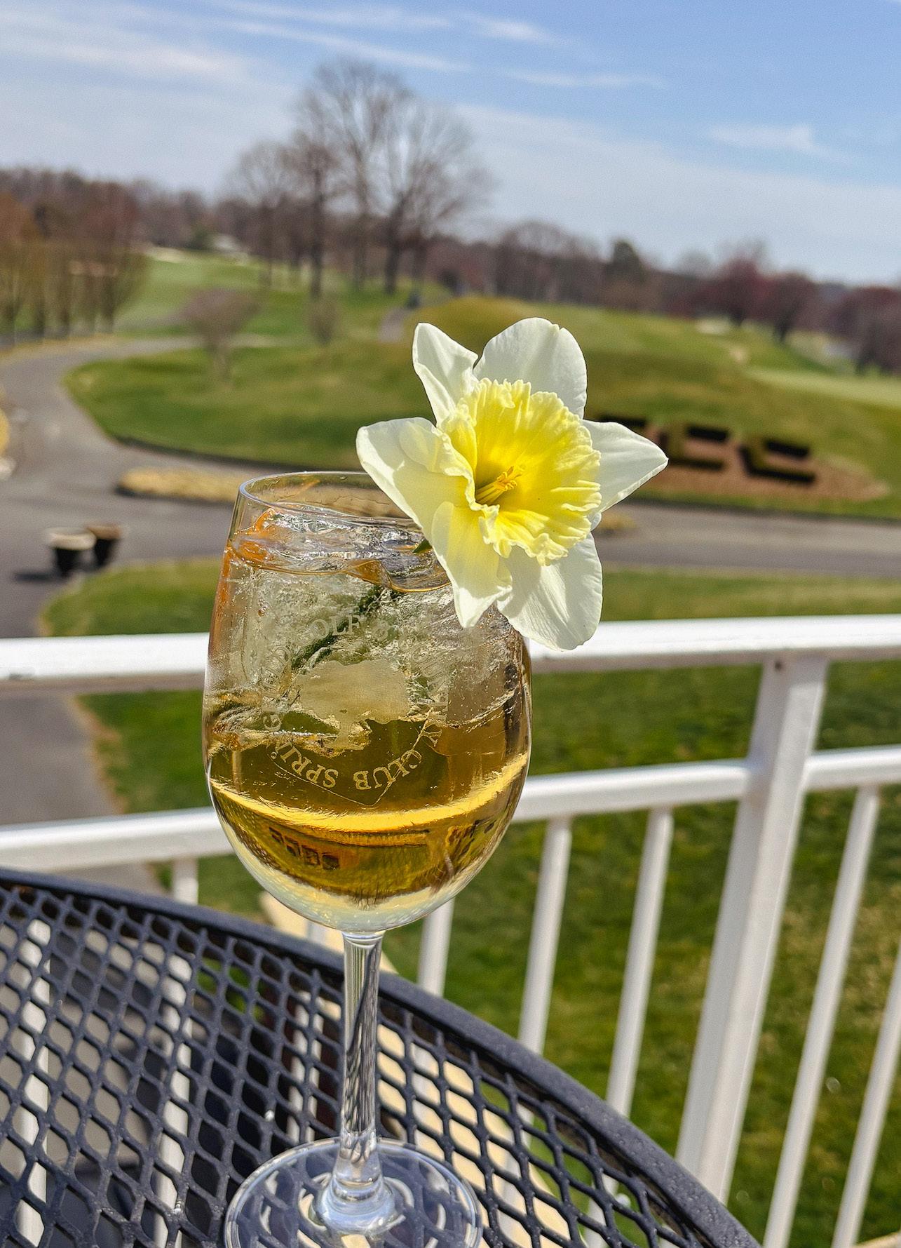 The air is warming and the sounds of tee shots on the first hole are becoming a more frequent and welcomed sound heard from the back patio. The change of the barren, cold winter to a warm and colorful spring brings the opportunity for exciting new and floral cocktails. We like creating innovative and outside-thebox craft cocktails for our Members and their guests to enjoy. This time of year, I love incorporating the fresh floral aromas one would find in a botanical garden and attempting to place those notes onto your tastebuds. The gentle pastel colors and beautiful garnishes make spring cocktails some of the most eye-catching and exciting cocktails both to craft and imbibe.