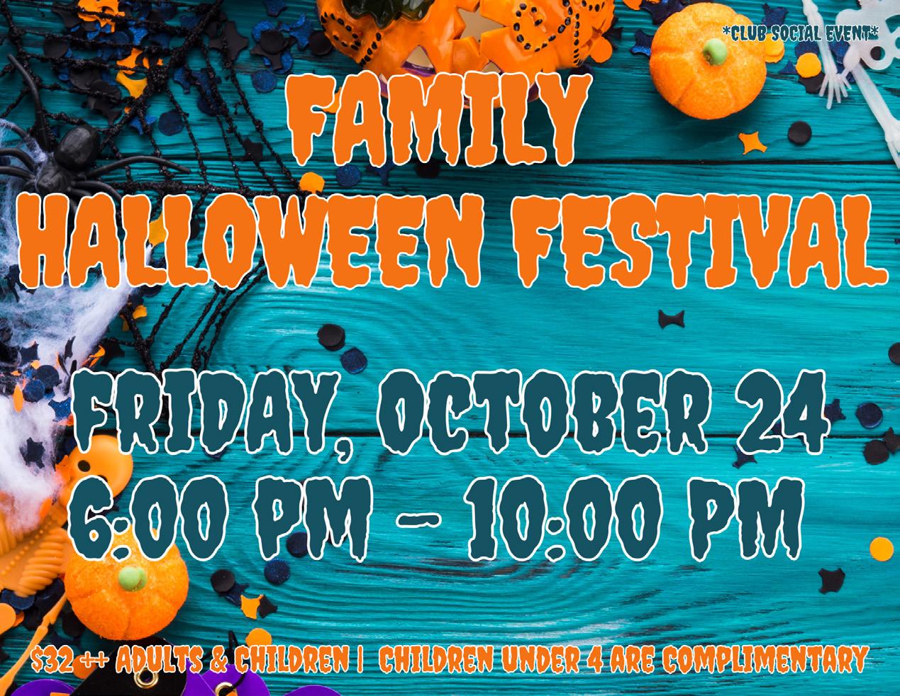Family Halloween Festival 6:00–10:00 PM Parent/Child Golf Clinic 4:00–5:30 PM
