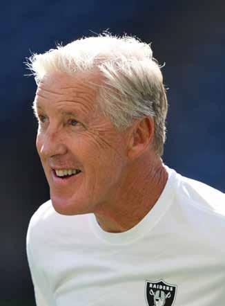 raiders first-year head coach pete Carroll stands on the field before a preseason football game against the Seattle Seahawks on aug. 7 in Seattle.