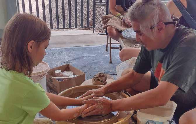 Poetry and Pottery in Soda Springs Park in Manitou Springs. This free-for-allages-and-abilities event teaches pottery making, hand building with clay, glazing, and we even have a kiln there. We also have poetry prompts, poetry games, and fill-in-the-blank poems. Healthy soup is served for those who are hungry. Each Tuesday afternoon in June and July, we bring together locals, tourists, and street folks from to create and get to know each other, build community, feel better, and have some fun. We see up to 80 people each week.