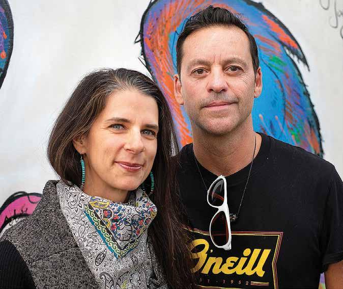 Diego is originally from Argentina, Adhya from Delaware. The couple met in Costa Rica and make their home in Old Colorado City on Colorado Springs’ Westside. “My inspiration is the place I live,” Diego says. “The mountains inspire me each day to be able to paint my art. I paint with acrylics. I paint murals in this city. I organize events to be able to expand the culture here.”