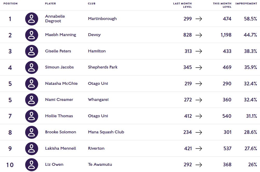 as Club President in 2021, she has continued to be the driving force behind countless grant applications that have enabled numerous Club Uplift projects and coaching programmes. These include reflooring two courts, offering discounted coaching to all members, supporting school participation programmes, lighting upgrades, and much more. Without Deb’s commitment and passion, many of the great opportunities and improvements at Burnside Squash Club simply wouldn’t have been possible.
