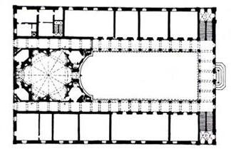 The Pantheon in Paris was selected as the second typological reference for its potential in shaping the farming production area. Its strong axial symmetry and expansive spatial organization were adapted to integrate with the Sant’Ivo alla Sapienza floor plan.