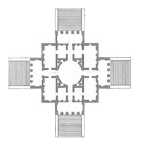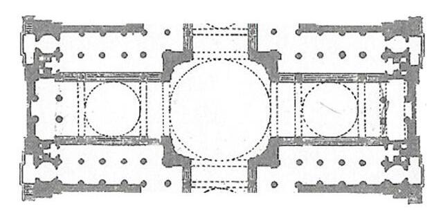 The Pantheon in Paris was selected as the second typological reference for its potential in shaping the farming production area. Its strong axial symmetry and expansive spatial organization were adapted to integrate with the Sant’Ivo alla Sapienza floor plan.