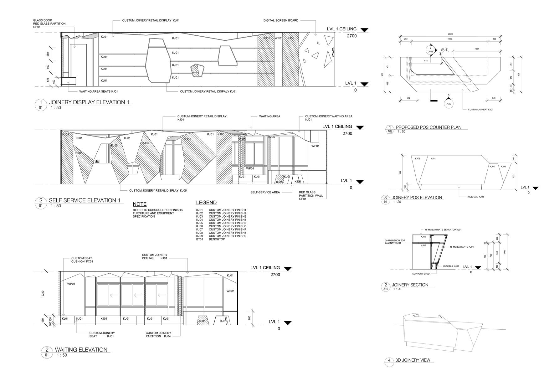 Rectangular forms and linear elements represent the creative process and its ongoing evolution, while the red and blue colour palette signifies the identity of the creative industries and evokes a sense of brightness. This colour scheme is applied across various design elements, including flooring, walls, joinery, and the point-of-sale counter. Additional features, such as an angled bookcase and a screen board area, enhance functionality and visual interest. Together with the vibrant colour choices, these design elements contribute to an inviting and stimulating atmosphere for all users. Furthermore, sustainable materials have been selected for their durability and long-term environmental benefits.
