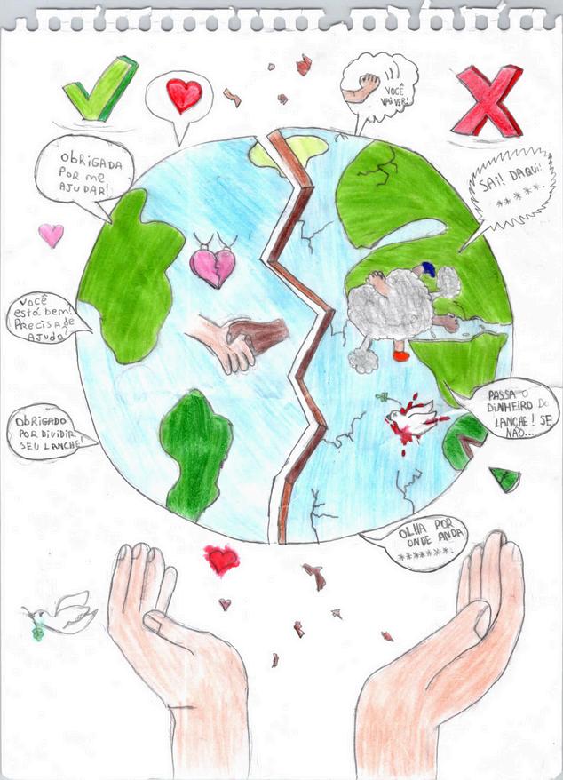 Se você vê alguém sofrendo, não fique calado! Ajude a pessoa. Sua atitude pode mudar tudo. Na nossa escola, o respeito deve ser regra. Devemos tratar uns aos outros como gostaríamos de ser tratados. Com carinho, paciência e compreensão.