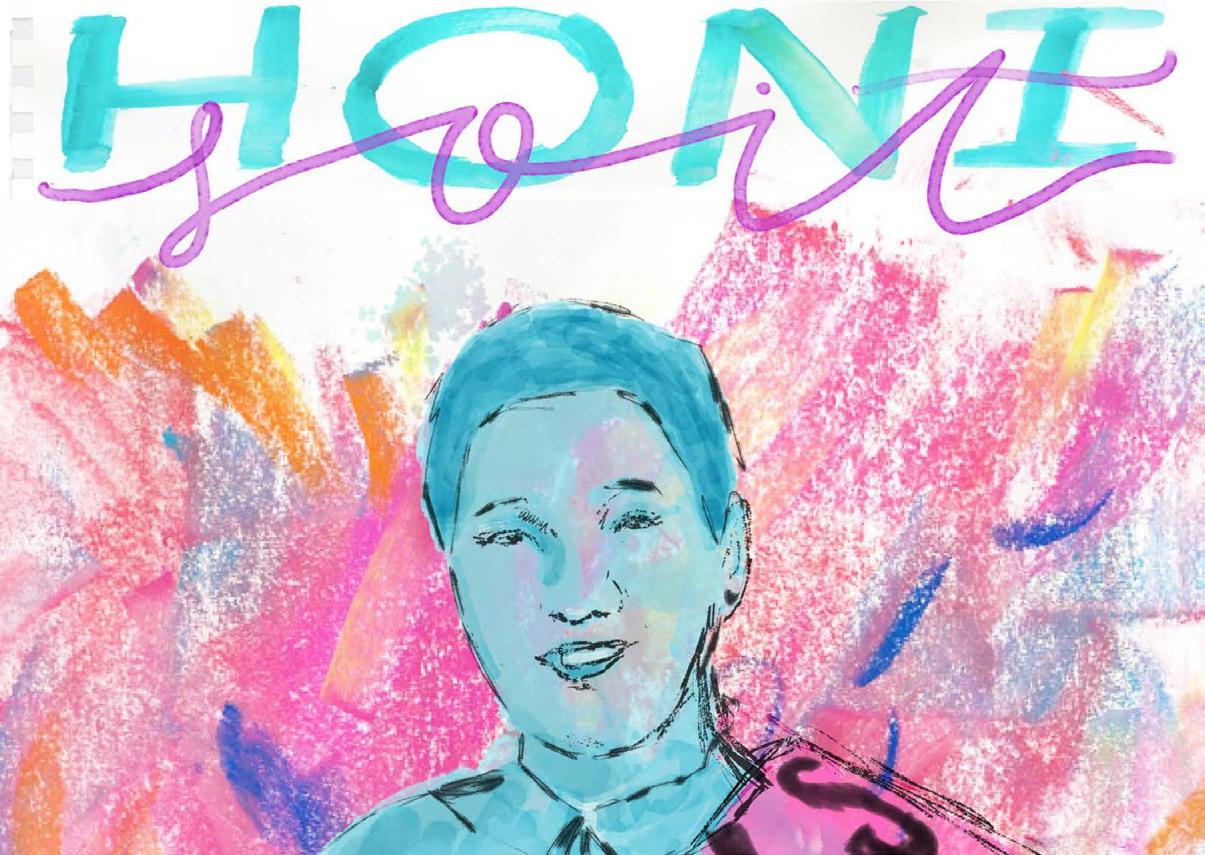 Image: cover of the 2023 Disabled Honi with diverse figures in muted colours and the word ‘Justice. Art by Bipasha Chakraborty.