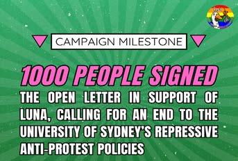 Finally, we are seeing a global crackdown on Palestine activism against vulnerable students at risk of deportation. We condemn the University of Sydney’s threatened expulsion of Luna, a transgender student on a humanitarian visa whose expulsion would have seen her deportation back to her home country, where being transgender is illegal. We are relieved her expulsion has been overturned, and hope this pushes the university to reconsider its draconian repression policies. We also deeply condemn the disgusting actions of the Trump administration in its arrest, detainment by ICE and threatened deportation of Palestinian student activist Mahmoud Khalil. This is a terrifying and authoritarian use of power, and we will continue to fight the wielding of police and state power to repress and enact violence against those speaking about genocide.