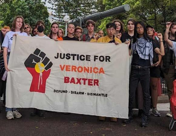 Amidst this, the University of Sydney continues its long history of silencing student fights for justice, both through its collaboration with police and its replication of their force through campus security, the Campus Access Policy, and threats of expulsion turned into deportation threats on a queer asylum-seeker student. The University props up colonialism at home and abroad with its investments into fossil fuels destroying Indigenous land and weapons manufacturers and military technology used to commit genocide in Gaza. The fight for land back and selfdetermination for First Nations people in Palestine, in so-called ‘Australia,’ in Turtle Island, in Papua New Guinea,
