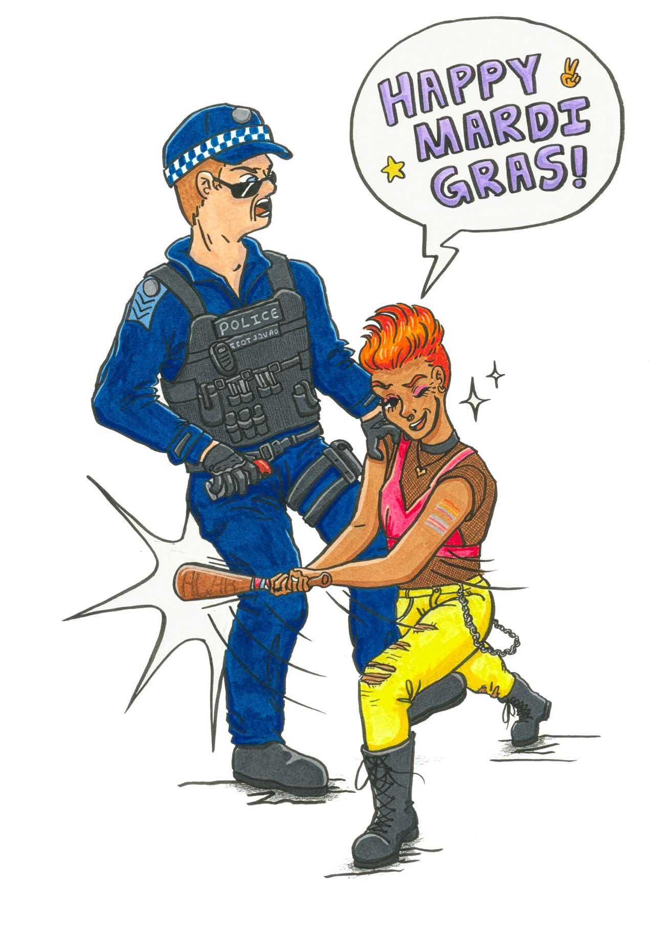 So-called ‘Australia’ continues its long history of silencing, brutalising, and murdering First Nations people with no signs of stopping, and its ever growing death toll must be kept at the forefront of our minds and actions when organising for queer liberation. We are 35 years out from the Royal Commission Into Aboriginal Deaths in Custody, with 630 recorded deaths and still no justice. Trans women and sistergirls are incarcerated in men’s prisons and face assault and the denial of gender-affirming healthcare.