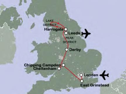vervoer in comfort class-touringcar overtocht Calais – Dover v.v. goed middenklassehotel 5x ontbijt en 5x diner audiosysteem lokale gidsen de beste SRC-reisleider bijdrage SRC-bos via Trees for All