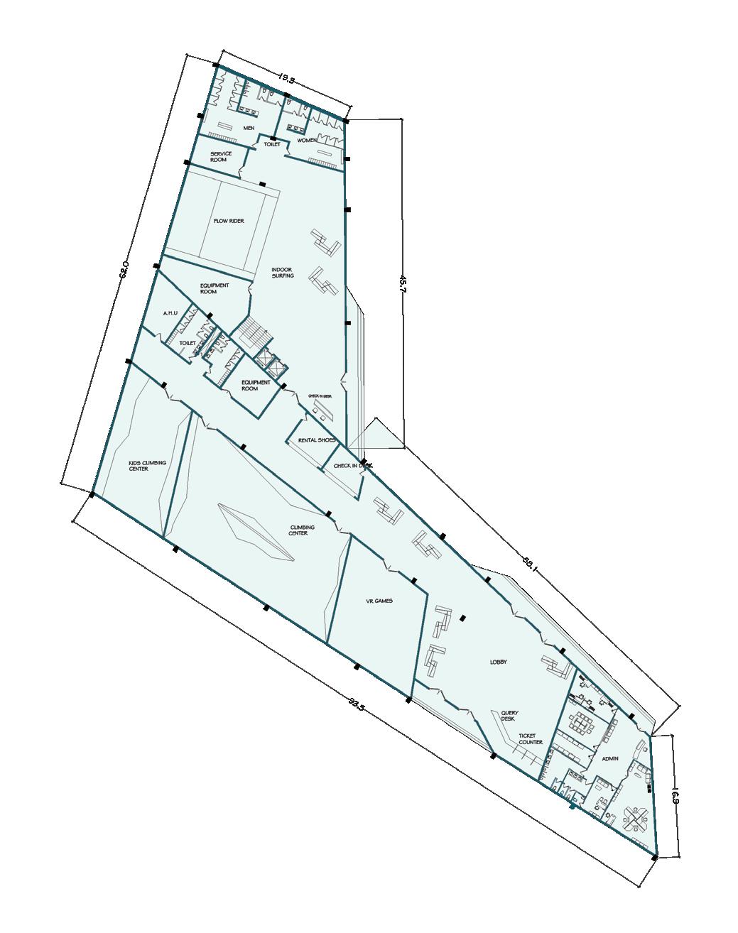 Zoning of the “FUN, FIT & Discover” was done based on the users. People coming to the Fit zoned area are professional sportspersons so they were zoned as such other public visitors wouldn’t enter that part of the area. And the Fun and Discover parts were designed with glass facades to make it more extroverted and more welcoming to the visitors and to make the visitors wonder what kind of games are inside and take part in them. Equal importance for the games were given based on the age group as in both kids and adults.