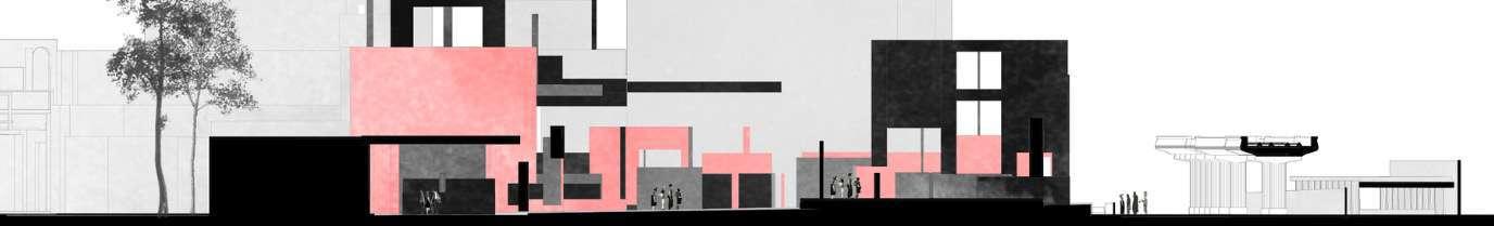 The black anchors become the stakeholders of the site and hence alter the ground plane. Slender pillars and columns rise these ground planes to a particular height and hence the system of walls moving continues on different levels.