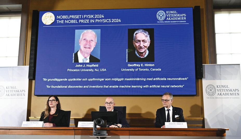[vedska kraqevska akademija nauka odlu~ila je danas da dodeli ovogodi{wu Nobelovu nagradu za fiziku Xonu J. Hopfildu i Xefriju E. Hintonu "za temeqna otkri}a i pronalaske koji omogu}avaju ma{insko u~ewe pomo}u ve{ta~kih neuronskih mre`a".