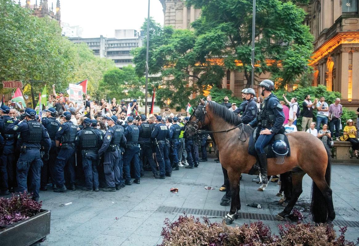 U ponedeqak uve~e, policija se sukobila sa stotinama demonstranata ispred Gradske ku}e u Sidneju. Poprskali su masu biber-sprejom i nekoliko demonstranata je uhap{eno. Protest je nastavqen po{to su organizatori Grupe za akciju u Palestini izgubili sudski spor protiv policijskog naloga kojim im je zabrawena povorka od Gradske ku}e do Parlamenta Novog Ju`nog Velsa.