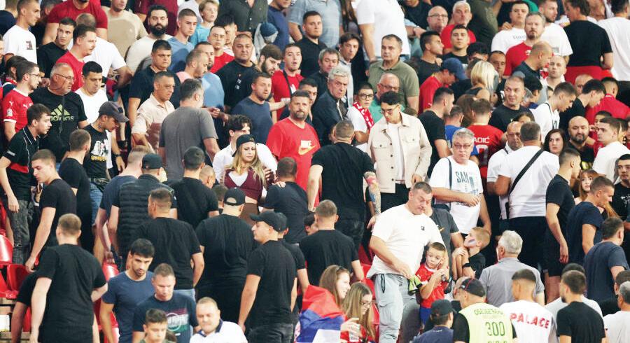 cionalnih himni, • diskriminatorno pona{awe pojedinih navija~a. Pored nov~ane kazne, Fudbalskom savezu Srbije je nalo`eno da narednu FIFA takmi~arsku utakmicu A selekcije (protiv Albanije u Leskovcu) odigra sa ograni~enim brojem gledalaca. Tom prilikom, bi}e zatvoreno najmawe 20% kapaciteta tribina, prvenstveno iza golova.