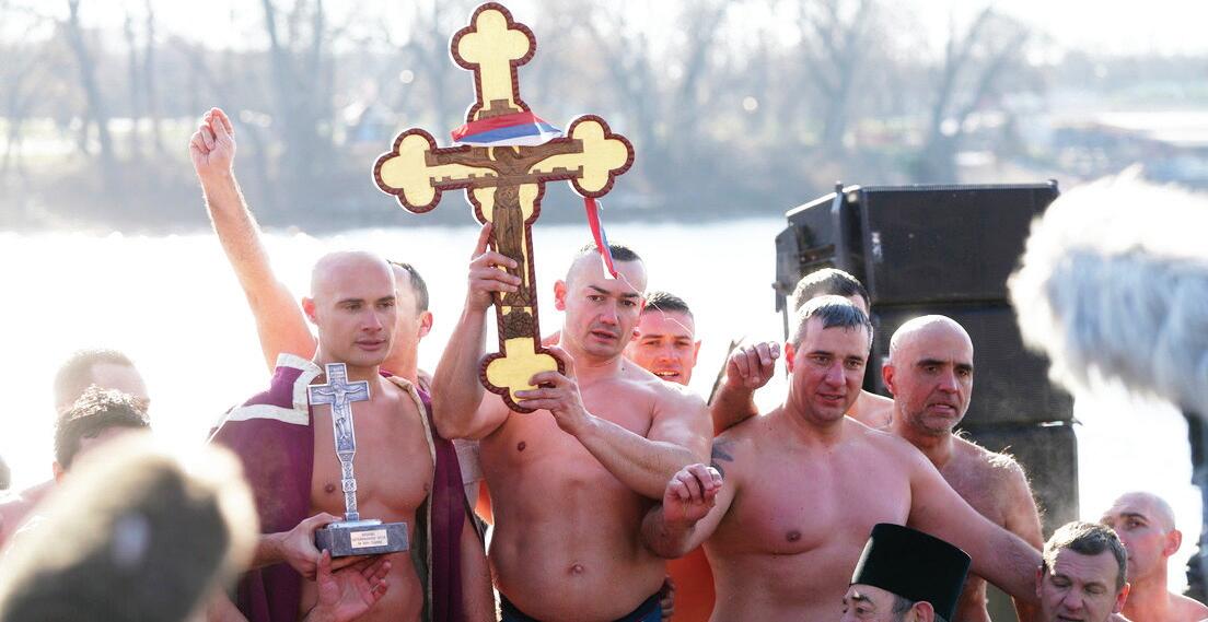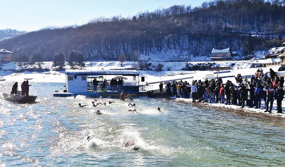 Pre plivawa za ^asni krst, u Hramu Svetog \or|a na Banovom brdu odr`ana je sveta liturgija i osve}ena voda povodom proslavqawa Bogojavqewa, jednog od najve}ih hri{}anskih praznika, koji se obele`ava uo~i praznika posve}enog Svetom Jovanu Krstitequ.
