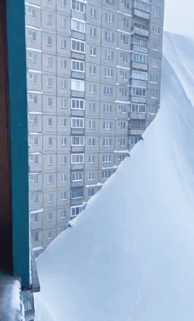 Nanosi snega na Kam~atki, velikom poluostrvu na krajwem istoku Rusije, tokom ekstremne oluje pro{le nedeqe, bili toliko veliki da su u pojedinim delovima grada nanosi snega dosezali visinu otprilike do ~etvrtog sprata zgrade. Visina sne`nog pokriva~a prema{ivala je 3 metra, potpuno zaklawaju}i ulaze i prozore i prave}i zidove od snega.