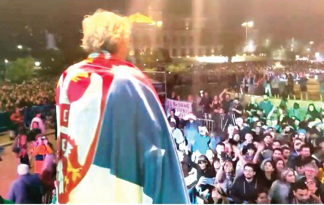 Kusturica je na bini bio sa zastavom Srbije u ru kama… - @ivela Srbija! Dogodine u Prizrenu“ – klica li su Kusturici Argentinci okupqeni ispod bine, me|u kojima je jedan bio ogrnut zastavom Srbije.
