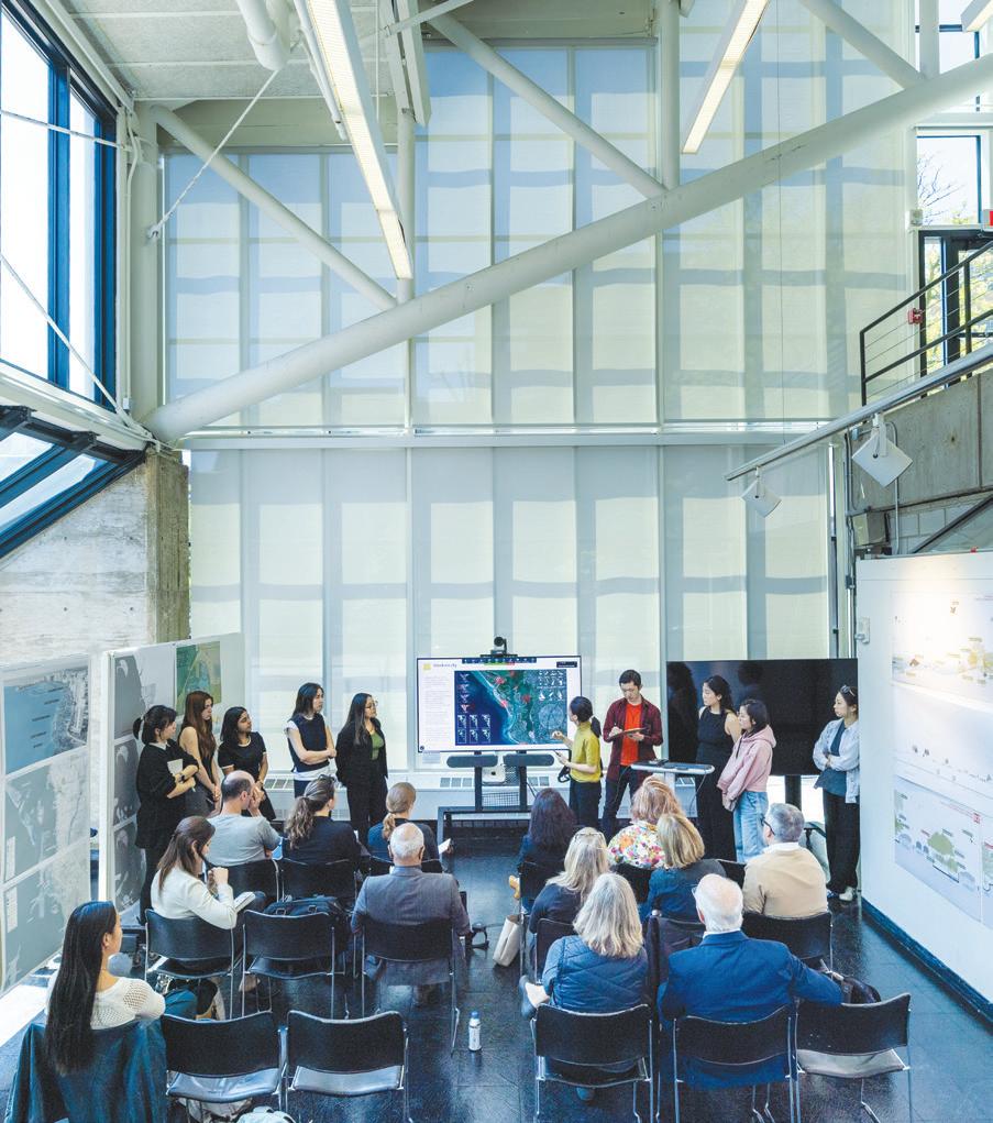 Below: Harvard graduate students on their visit to Sarasota in March 2025; the students present their findings to a group of city officials, designers and nonprofit leaders.