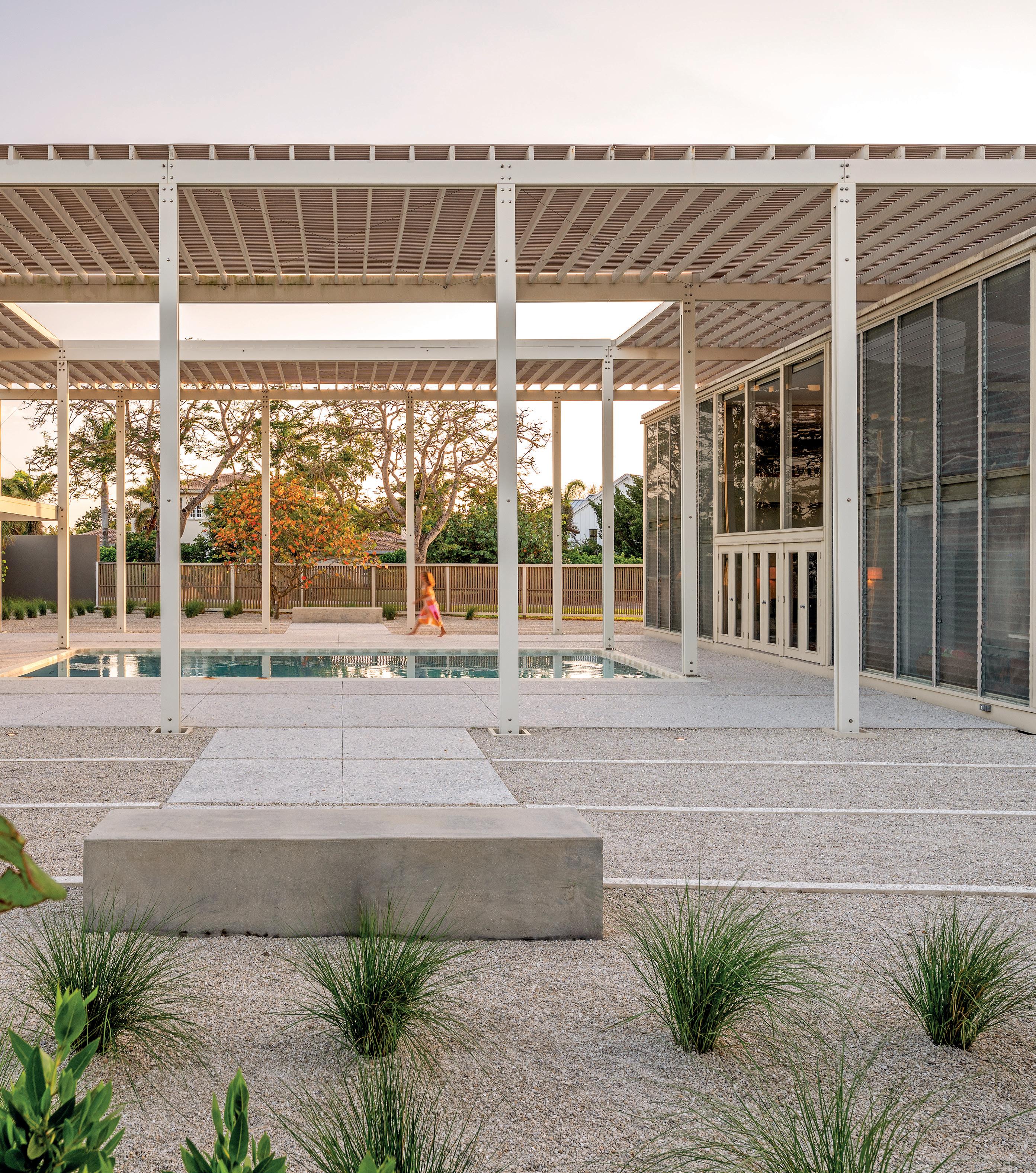 “It seems like everyone in the Sarasota School came out of that Bauhaus movement, so we looked at those principles and thought about how we could essentially borrow those from the architecture and incorporate them into the landscape design,” Diedrich says. “I think for us, the biggest thing was we wanted to focus on designing when the landscape was to essentially be submissive to the architecture, right? Everything that we were doing was intended to be very subtle and really complement that.”