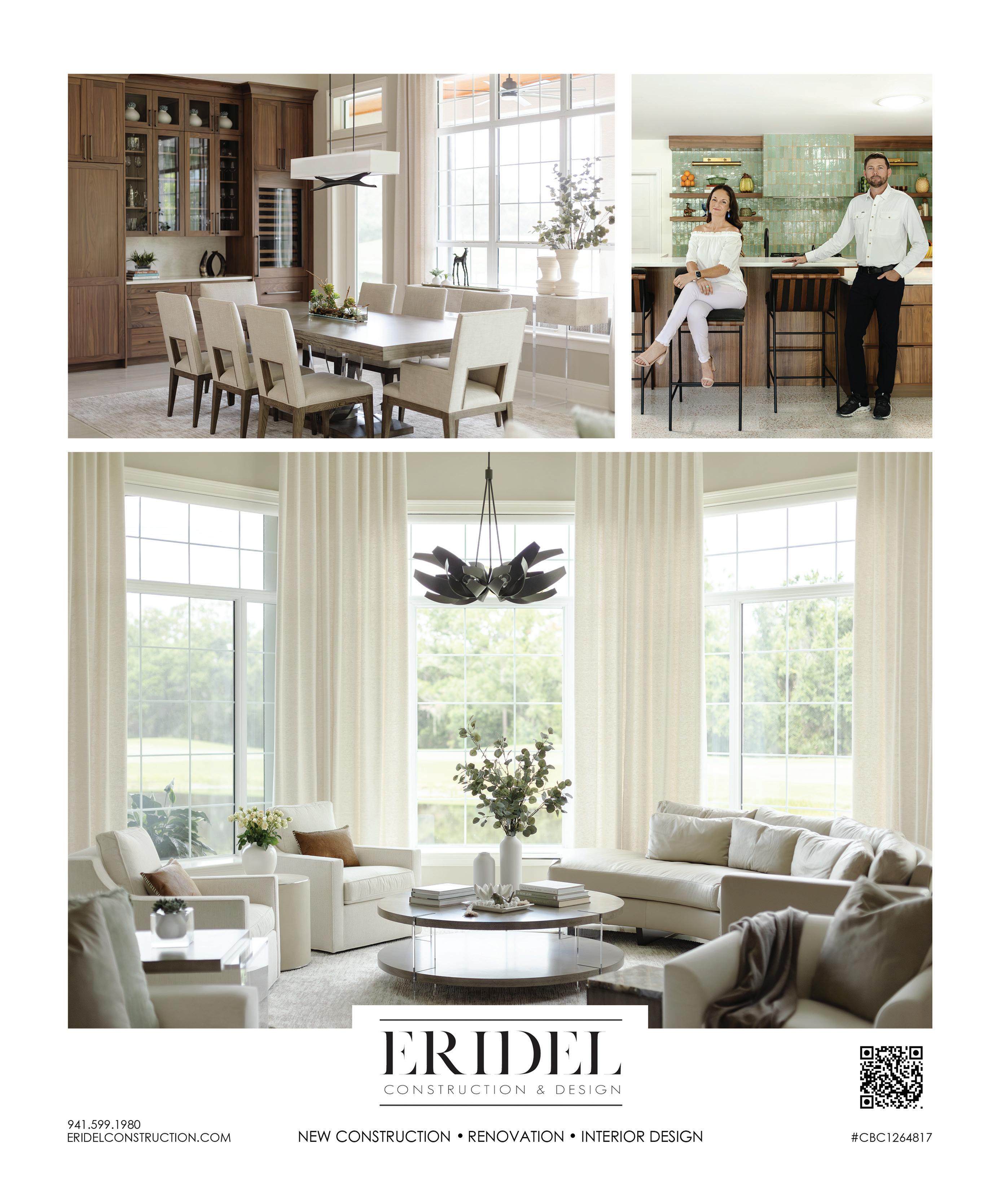 This page and cover: Eridel Construction and Design; Barnard Brothers Electric, Bee Ridge Lighting and Vice & Virtue Furniture, photography courtesy of Eridel Construction and Design,