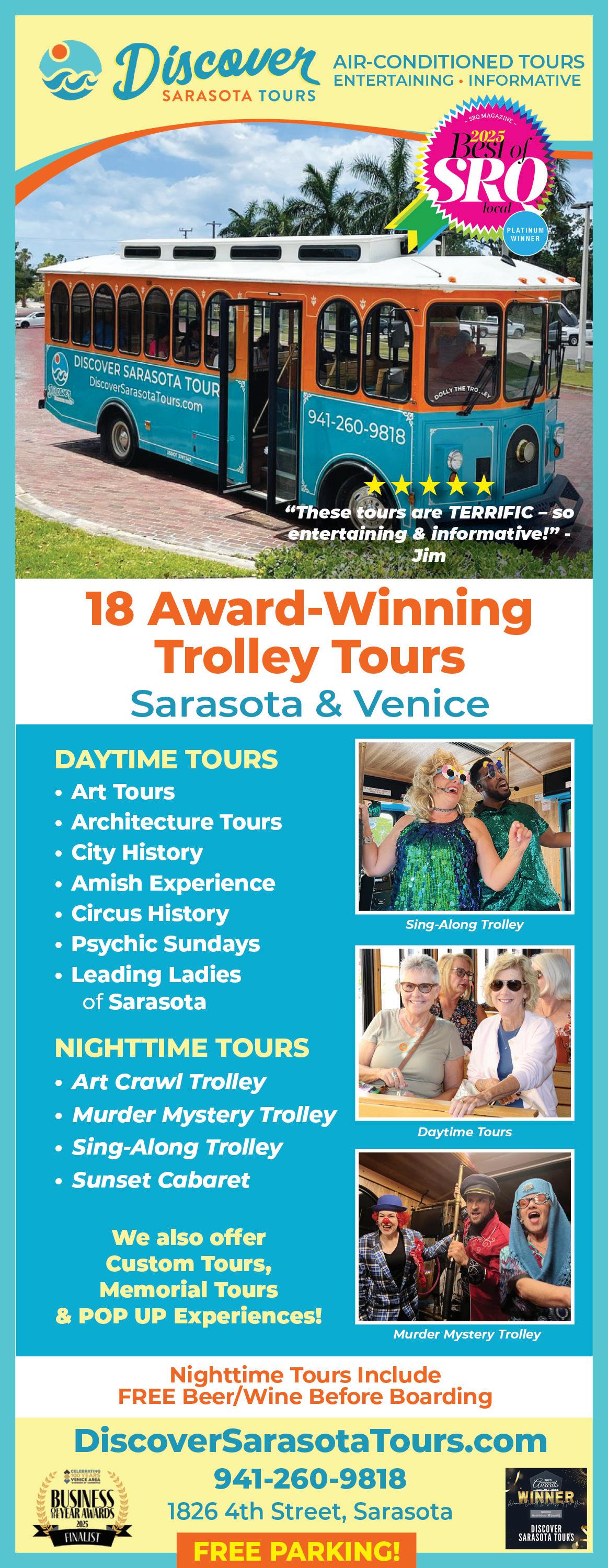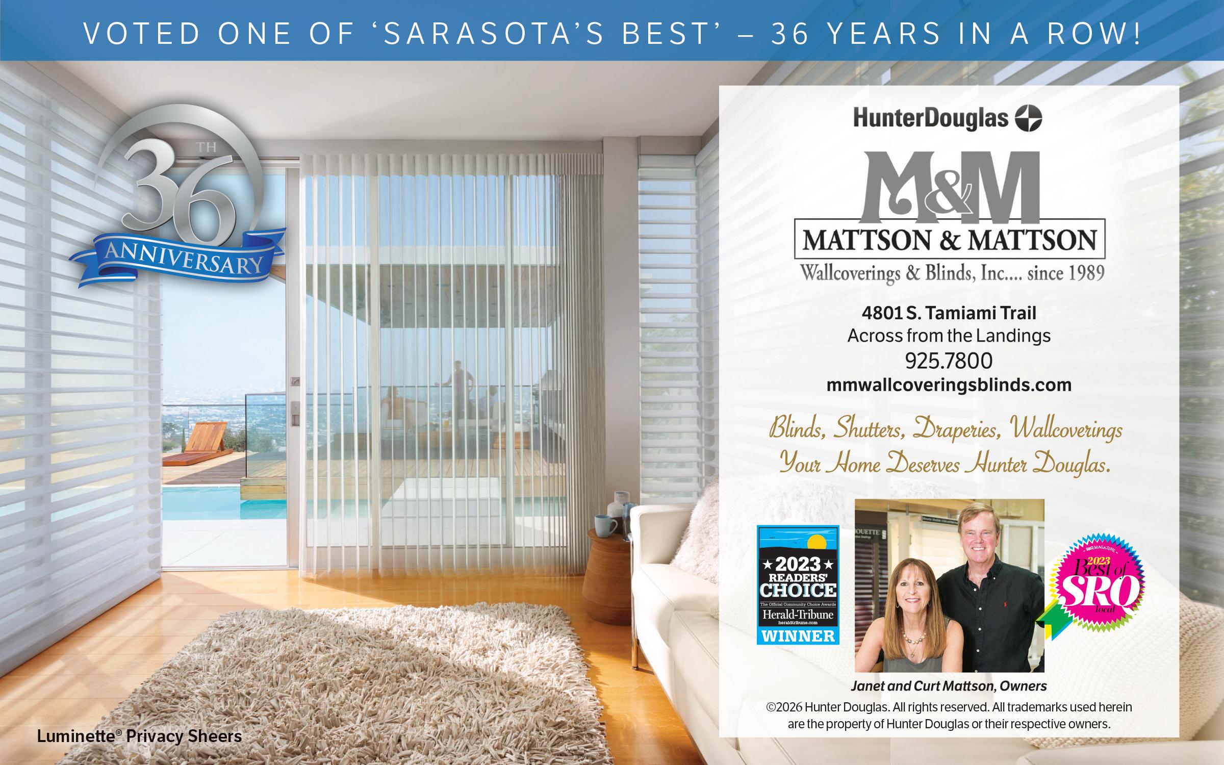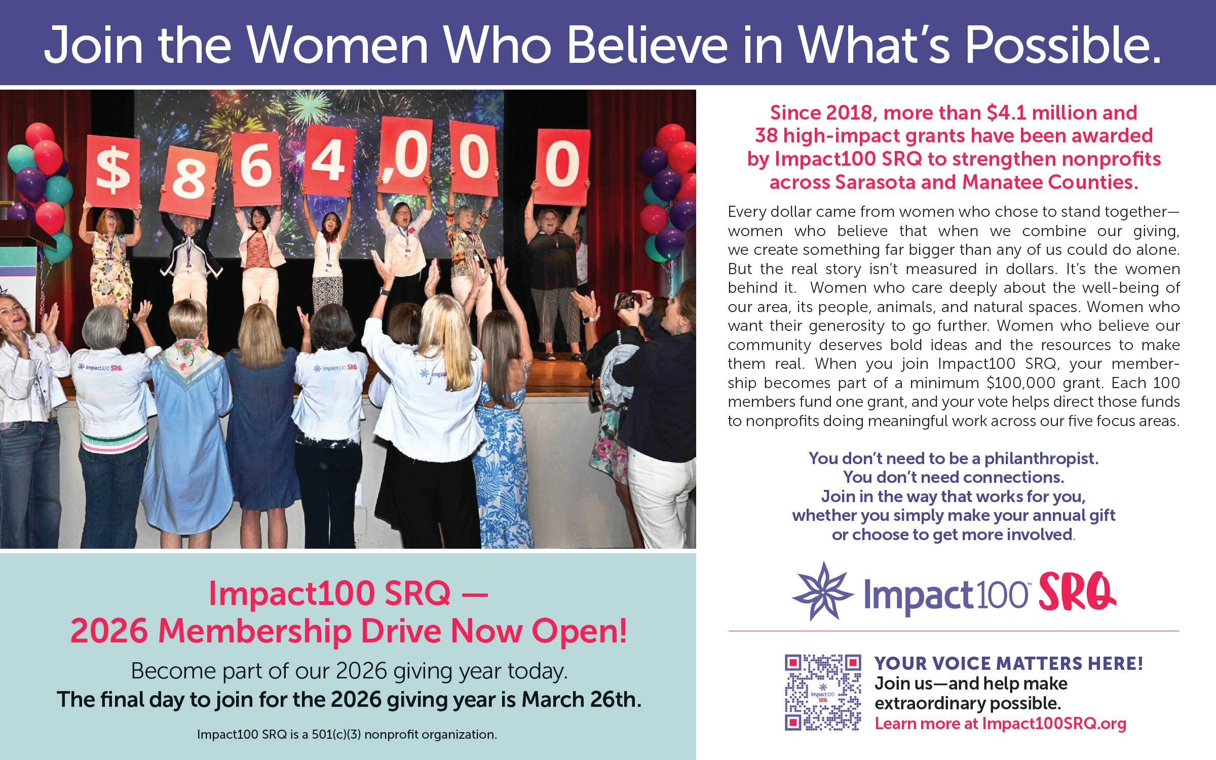 The magazine in your hands offers enormous insight into our community, but the most informed in our community follow our constant coverage of Sarasota and the Bradenton Area in SRQ Daily. The electronic newsletter is a must-read in thousands of inboxes. Check our special editions: Monday Business Edition, Tuesday Foodie Edition, Wednesday Philanthropy Edition, Thursday Family, Education and Sports Edition, Friday Weekend Edition and the much-discussed Saturday Perspectives Edition, featuring a diverse range of opinions from the region’s top pundits and newsmakers. SIGN UP ONLINE AT SRQMAG.COM/SRQDAILY
