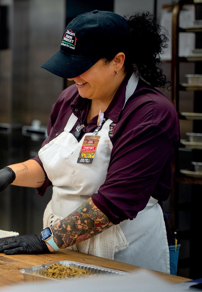 In the kitchen, Farm Market manager and chef Kenny Pisciotta’s relationship with Rasmussen and Ahuja allows him to experiment with seasonal offerings. “Typically, with being a chef you order your ingredients, they come in and then you prepare it,” says Pisciotta. “Here, you walk out into the field and pick what you want.”