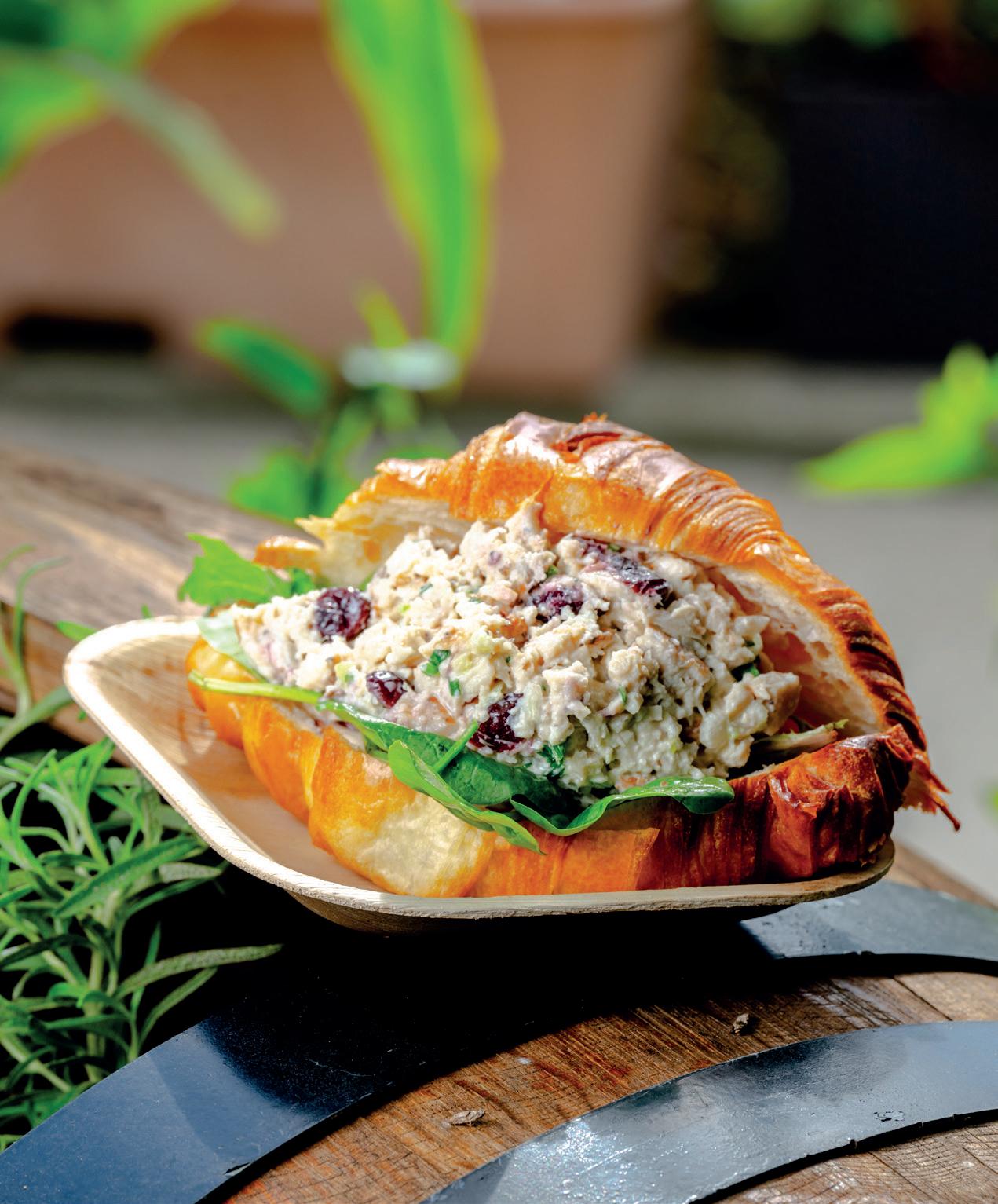 An autumn salad employs Gamble Creek’s pumpkins, diced and sautéed in brown butter, tossed with fresh microgreens, dried cranberries, pecans, crumbled goat cheese and topped with a mulberry vinaigrette. Those same berries can be found in the chicken salad croissant—the flaky deliciousness courtesy of Sarasota-bakery Bread Bandits—a fresh, punchy sandwich perfect for lunch. The hybrid pumpkins as well as squash, assorted legumes and papayas make their way into fan-favorite soups.