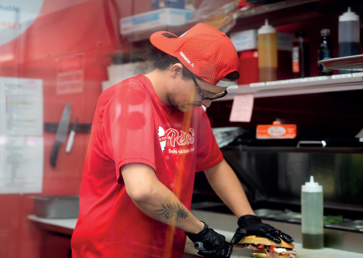 Below: The pork roll is the star ingredient of the sandwiches at Pork Roll Pete’s; Andy Kutz, Pete Ferraro, AJ Altes and Chuck Casagrande; Attention to detail is a top priority for the employees of Pork Roll Pete’s.Pork Roll Pete’s, 4657 Cortez Rd W, Bradenton, 941-896-3333, porkrollpetes.com.