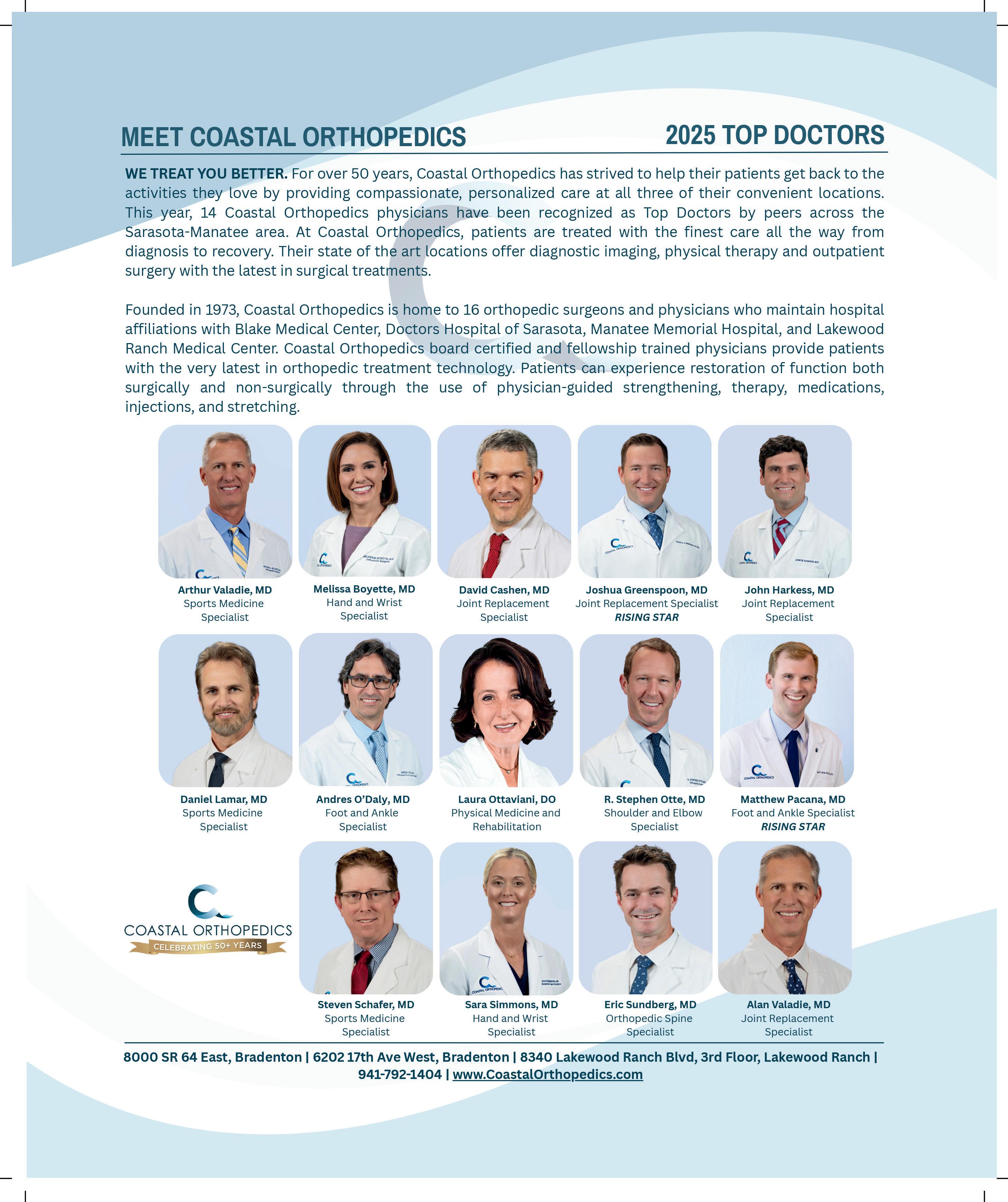 3030 Executive Dr | Venice, FL 34292 941.485.1505 | suncoastorthopaedic.com