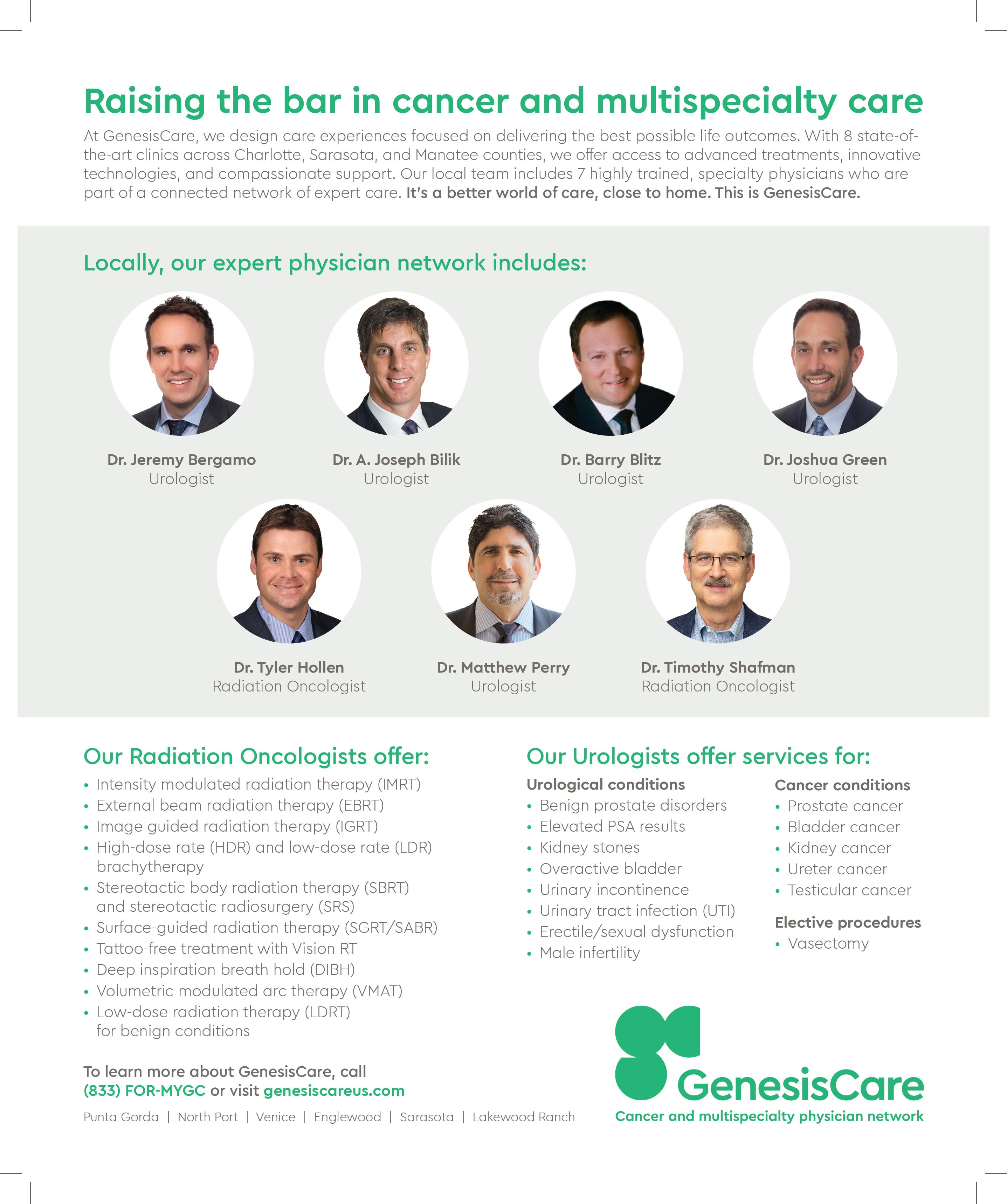 TELL US ABOUT YOUR PRACTICE. At Center for Brain and Spine in Sarasota, Florida, we are proud to provide a multi-modal approach for targeted, individualized patient care. Led by board-certified neurosurgeon, neurocritical care specialists, regenerative specialists, and medical specialists, Center for Brain and Spine Team strives to provide comprehensive and compassionate patient care with application of cutting edge, state-of-the-art neurological surgeries, neuromedical therapies, and regenerative procedures, both in the hospital and in the clinic. We understand that all our patients have di erent needs, challenges, values, and goals in the context of illness. Our creative, patient-centered approaches help our patients overcome challenges and achieve their goals of optimal health and well-being.