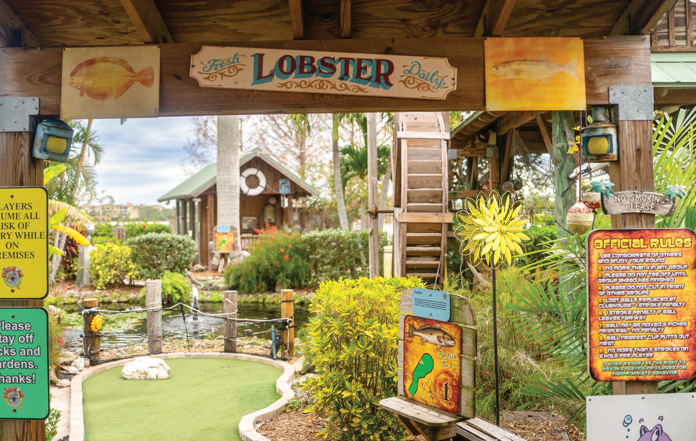 The Fish Hole is an activity that won’t break the bank. Currently, everyone from age four and up plays $13.08 for the first round, while golfers three and under play for free. The course also offers $2 same day replays that are good all day. If you take your family golfing in the morning and leave to get lunch, you can still come back and play another round for $2 each. The course also sells bottled drinks and ice cream treats if you need to cool down on a warm spring day. “We’re familyfriendly,” Driscoll says. “Kids, parents and grandparents, everyone can go out and have a good time—get off the phones and computers and just enjoy the natural atmosphere.” 10725 Rodeo Drive, Bradenton, 941-306-5891, thefishhole.com.