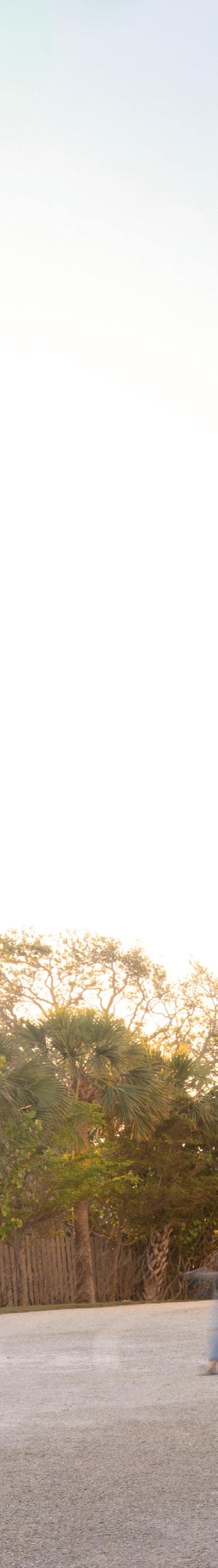 The design concept for the landscape of this Anna Maria home embraces its coastal context through the use of native and salt-resilient species while creating privacy and density that balance the structure, allowing it to feel as though it has always belonged on this special island. A primary challenge was creating a garden oasis that provides appropriate scale for two living stories over a parking area without feeling imposing. This was achieved by sourcing and transplanting unique mature trees that establish a sense of compression beneath their canopy. The impact of hardscape was so ened through the use of a permeable paving system that allows grass to grow and remain driveable. A gradual textural experience guides users and guests through the site. At the entry, reduced hardscape creates the feeling of driving directly into the garden as it opens around you. Reclaimed pavers add warmth and texture along the circulation path, leading to the autocourt where permeable turf block and reclaimed brick pa erns reflect the architecture and establish a more formal sense of arrival. On the Gulf side, the rear yard was designed to feel untouched. An exclusively native dune pale e defines a keyway beach path woven through existing sea grapes, which were selectively pruned for access. Additional native sea grapes, muhly grasses and dune sunflower enhance the coastal ecosystem, resulting in a natural Florida backdrop that frames Anna Maria’s iconic sunset views.