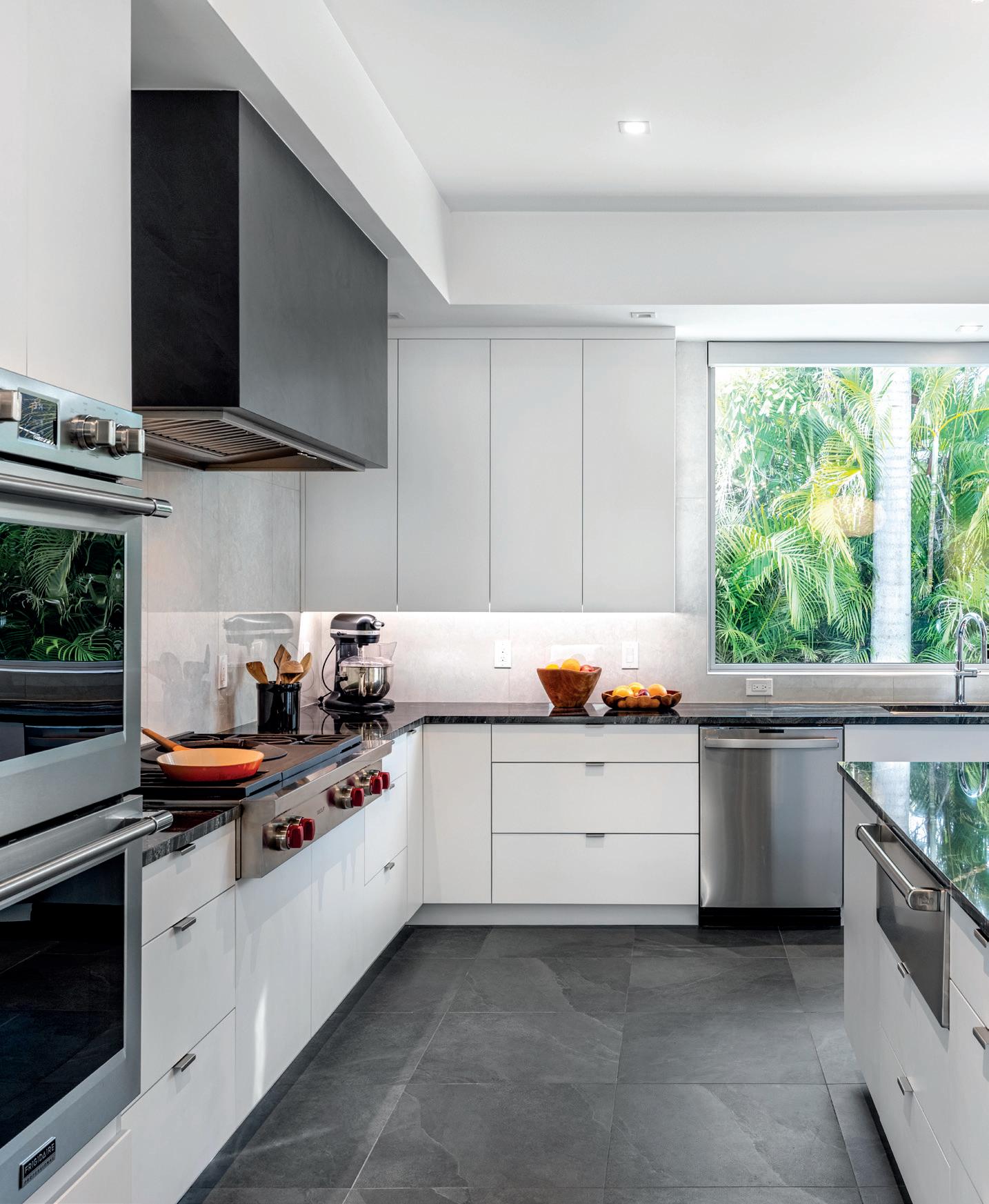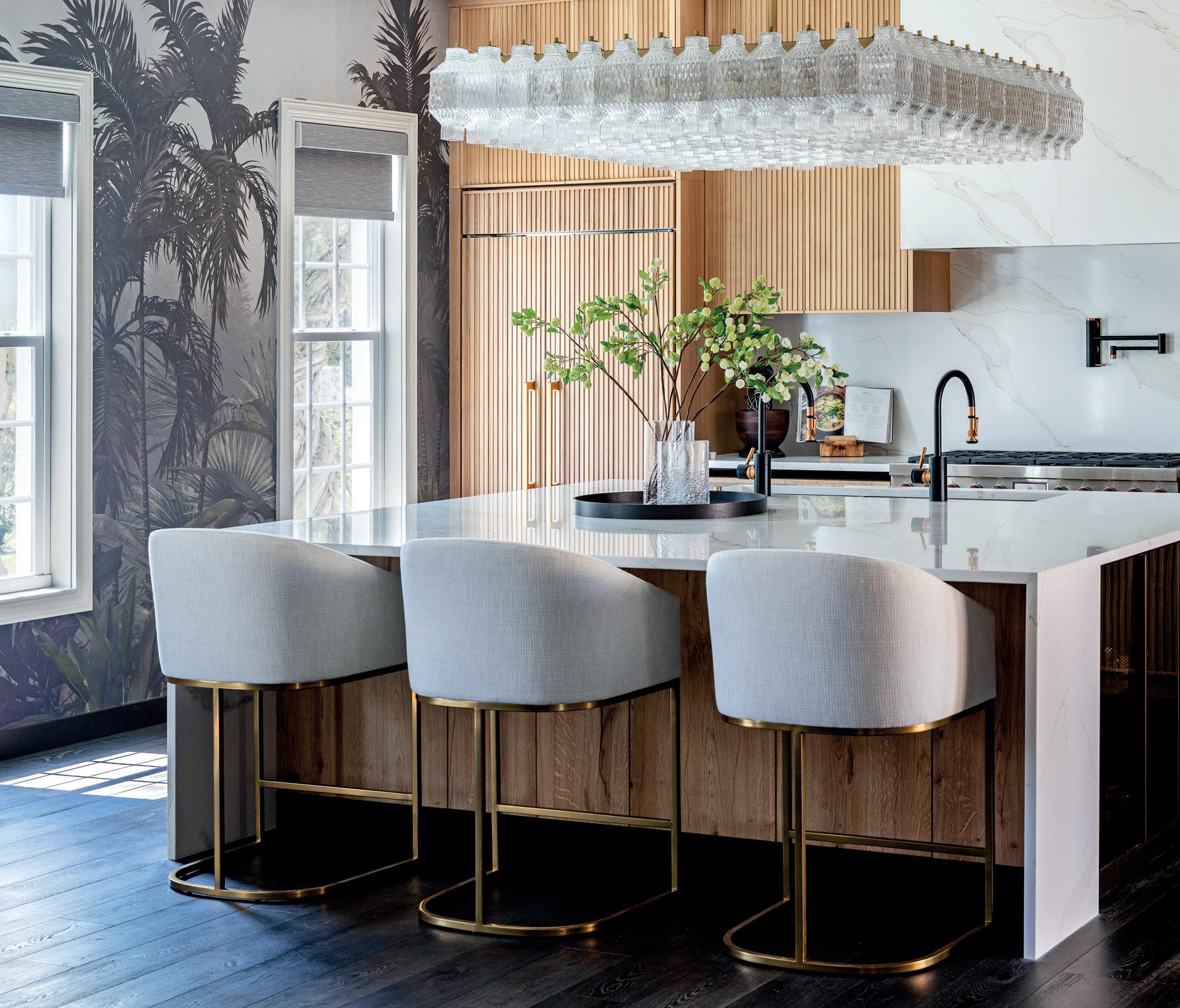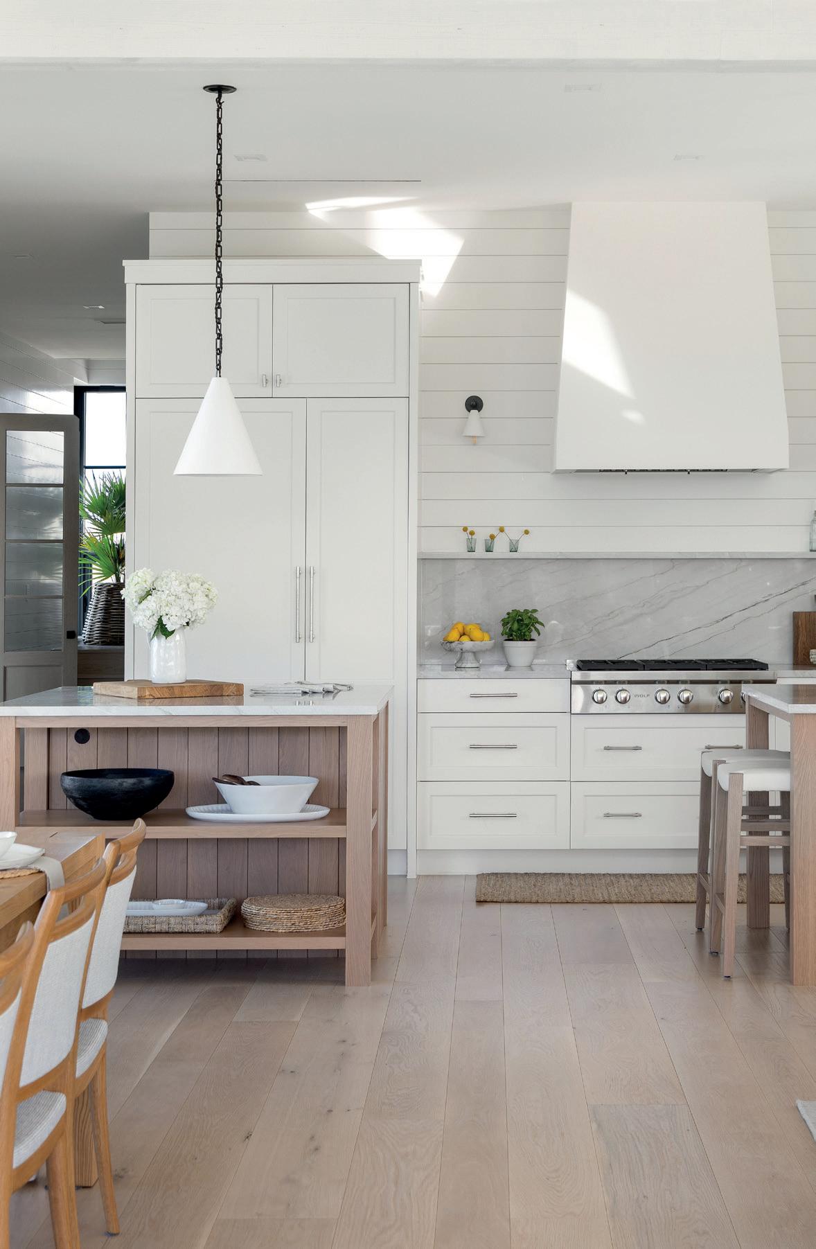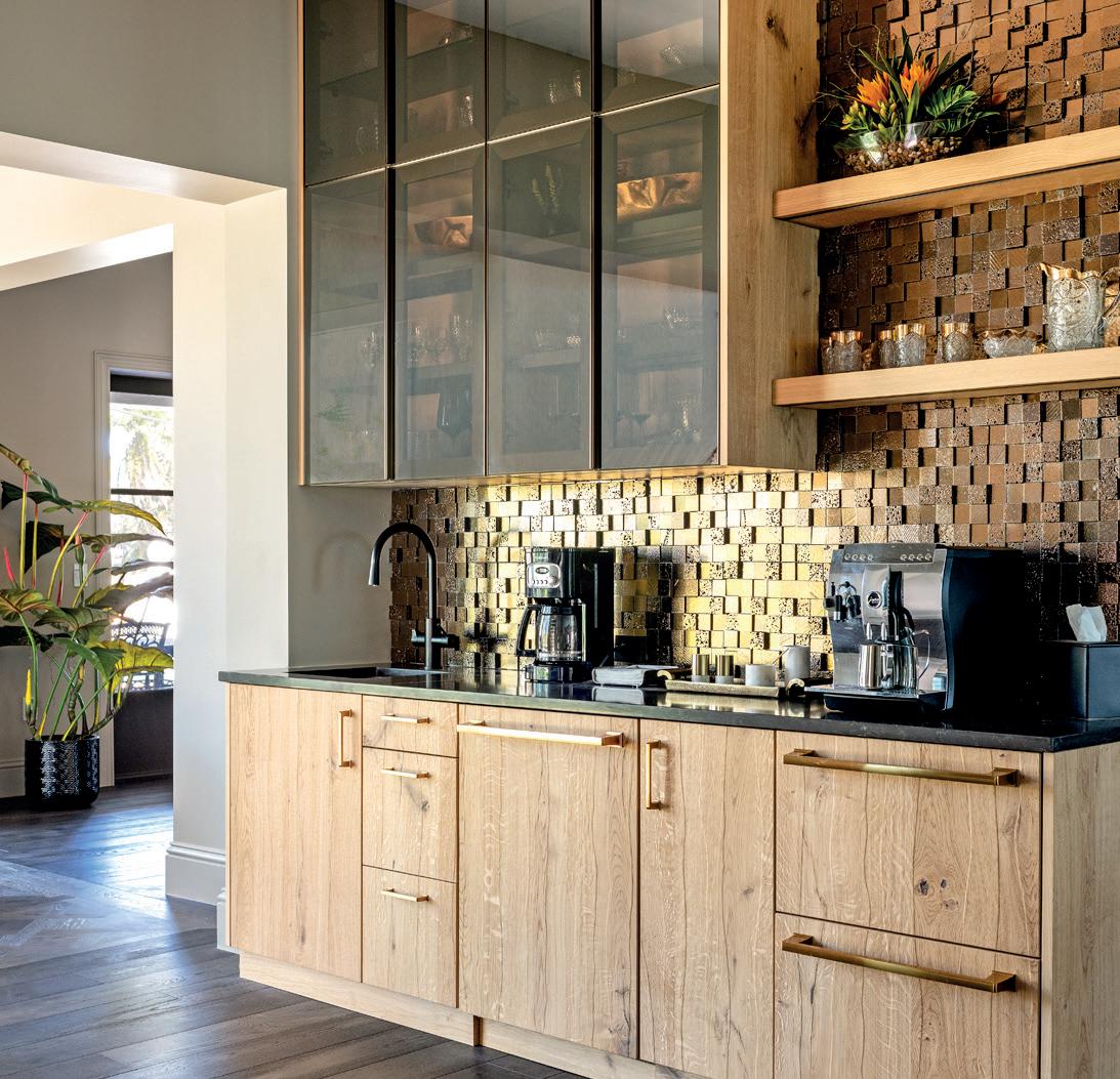 Watersound’s kitchen is a seamless blend of timeless charm and modern functionality, striking a balance between sophistication and warmth. Custom cabinetry and a Lacanche range position the kitchen as the heart of the home, designed to support both family gatherings and elevated entertaining. Inspired by the Gulf Coast, the color pale e and finishes convey a refined coastal sensibility that reflects the vibrant energy of the homeowners. Every detail, from the herringbone-pa erned wood flooring to the decorative lighting, was carefully selected to create a harmonious fusion of traditional charm and modern design. The project presented unique challenges as COVID-19 disrupted supply chains and staffing availability. Despite these obstacles, highquality materials were successfully sourced, and staffing shortages were addressed through the dedication of a core team and trusted subcontractors. The result is a kitchen that embodies enduring elegance while remaining fresh and contemporary, serving as a true centerpiece of the home’s architectural and interior vision.