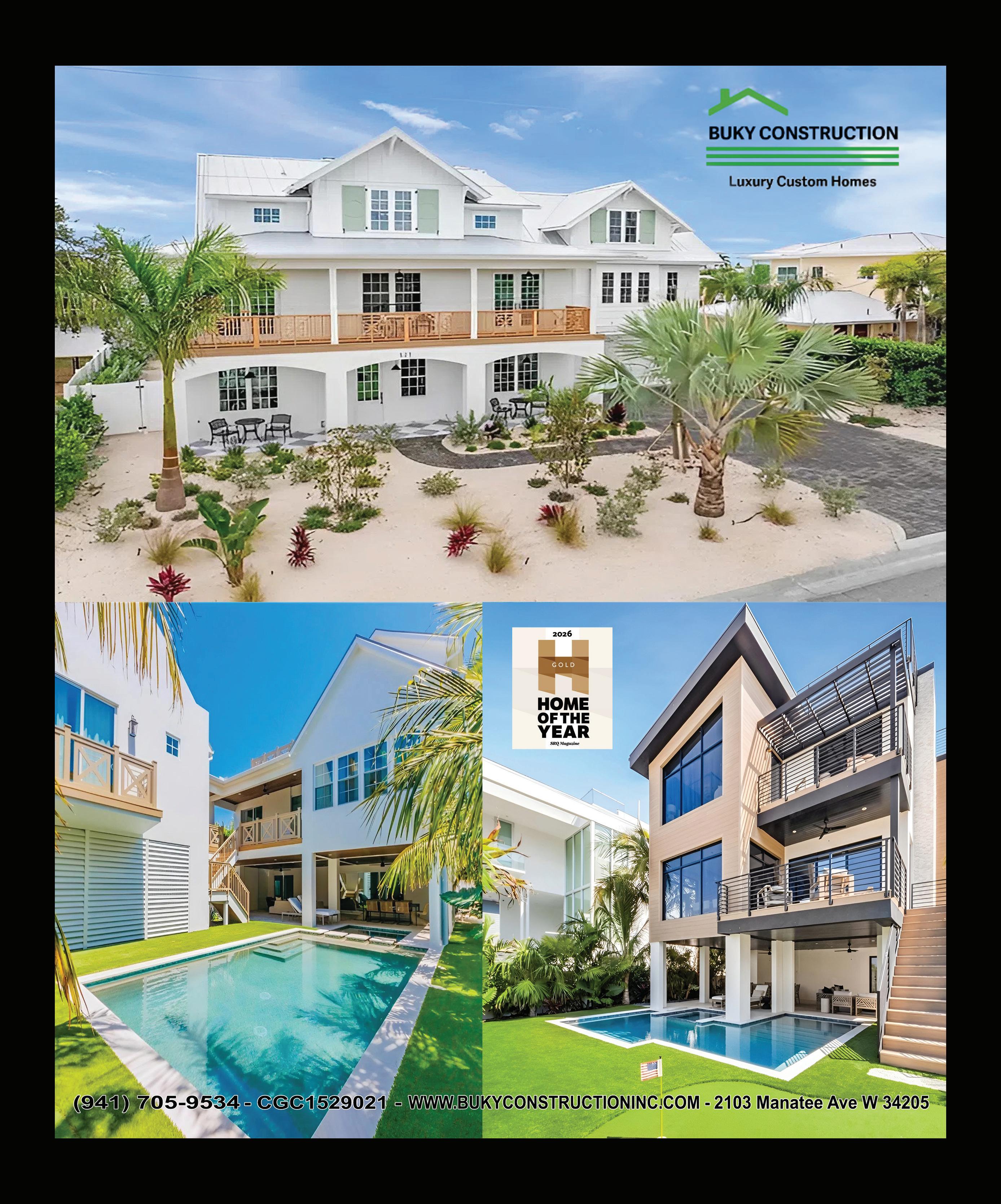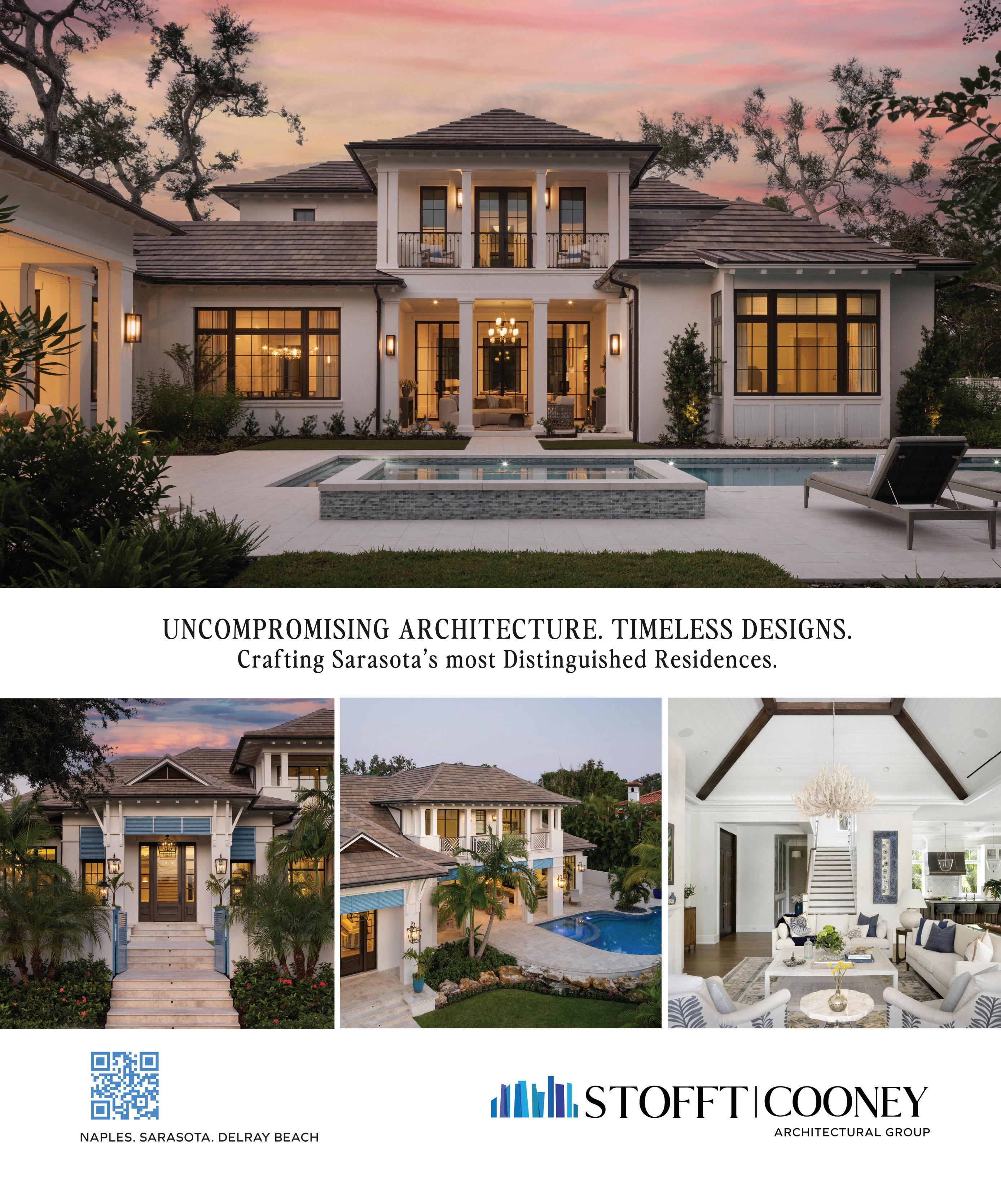 Home remains the most meaningful architectural space we experience throughout our lives. It reflects individuality, togetherness, privacy, stability and inspiration. As we continue to explore the role homes play in our everyday lives, the annual SRQ Magazine Home of the Year Competition invites local architects, builders, interior designers and landscape artists to share fresh perspectives on residential living by submi ing their recent projects. Year a er year, the competition reimagines the spaces where we live and thrive—expanding the conversation around what a home represents and what it can become through today’s building innovations, renovation approaches and regional influences. From seaside to streetside, inside and out, these award-winning homes celebrate and shape a growing legacy of inspired residential design.