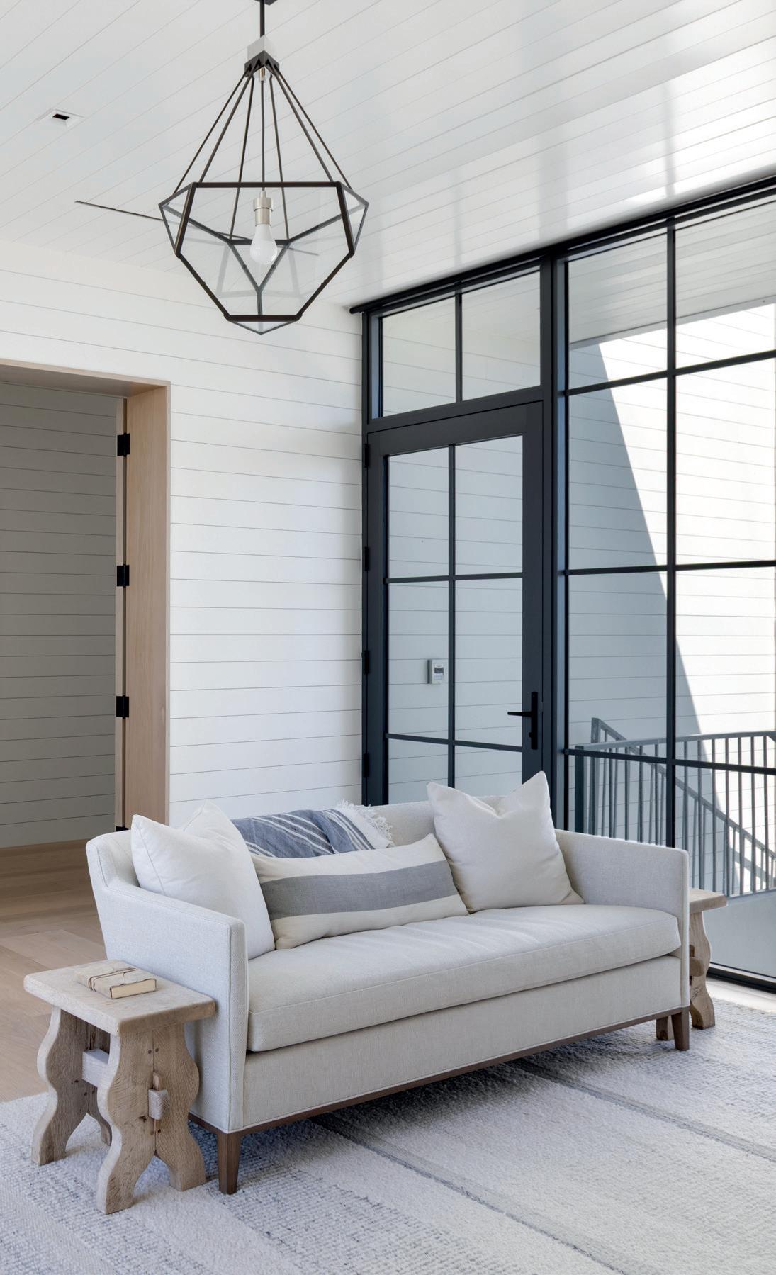A relaxed Florida vernacular welcoming generations of an extended family is embodied in this light-filled home. Drawing Gulf breezes from all sides, Watersound maintains privacy and a connection to nature. The interiors were designed to create family-friendly spaces while maintaining an aura of sophistication and ease. The pale e is inspired by cra sman-style houses, interpreted in fresh, vibrant ways. Familiar materials like oak, terraco a, ceramic, and plaster evoke a sense of history. Every room offers seating options for all ages, from li les to grands. The great room opens to a spacious screened porch through expansive glass doors, creating a fluid transition between indoors and out. The furniture layout provides ample options for socializing in small or large groups. The distinct sleeping quarters are spread across separate floors, with multi-layered window treatments—from blackout to sheer—respecting all circadian needs. Bespoke offices for adults and a generous playroom for children allow everyone to work, study, and play in dedicated spaces tailored to their needs. A thoughtfully curated selection of art, lighting and rugs elevates each space with a sophisticated use of color, texture and volume.