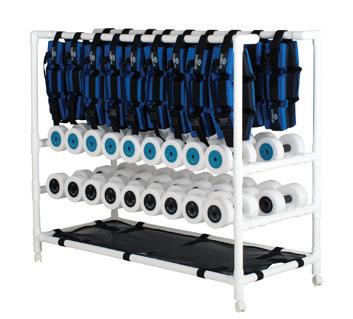 Turn your pool into a complete in-water fitness center. Choose from four different system configurations. Each rack measures 58" high x 27" deep x 65" long. Each system includes 18 pairs of hand buoys and your choice (18) cuffs, mini-cuffs, wave belts or wave belt pros.