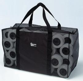 Sturdy, nylon mesh duffle bag features a full length zipper and comfortable shoulder straps. Holds up to 16 pairs of Hand Buoys or 22 Buoyancy & Resistance Cuffs. (20"H x 36"W x 15"D)