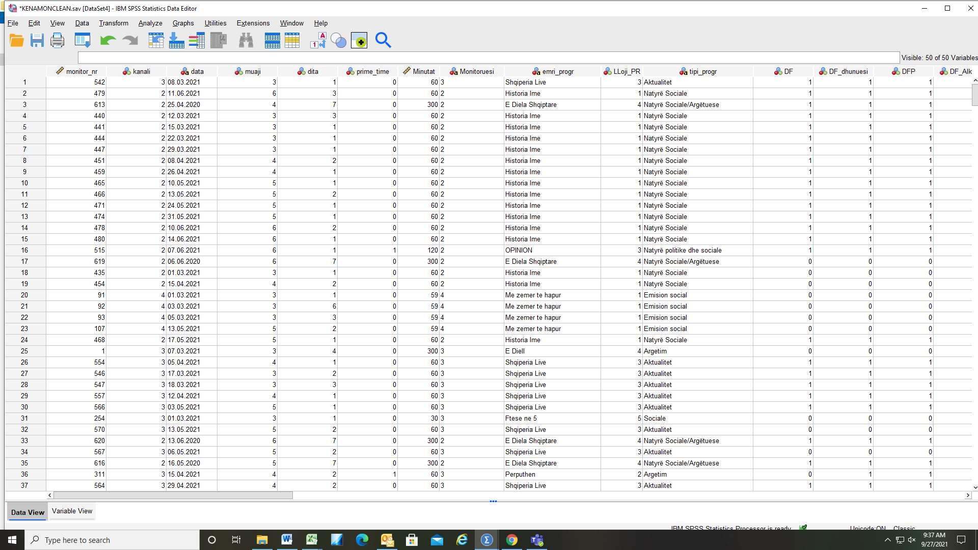 Table1AIllustration(printscreen)fromdatacollectedduringthemonitoringoftelevision programs
