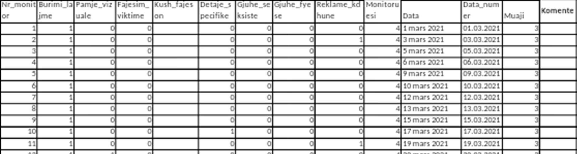 For the monitoring process, four monitors educated in social sciences and communication sciences were selected, with knowledge and experience in dealing withcases of violence and specificallyviolence against women, who were trainedina dedicated manner for the methodology of this survey. Searching and collecting monitoring data consisted in identifying cases of gender-based violence against women that are discussed in the visual media, classified under its three main forms: physical, psychological andsexual (definitions areincluded inthe Annex).Incases of identification of violence, specific details of the case were taken into account in addition to the type of violence, such as the gender of the perpetrator, whether it was a case of intimate partner violence, whether the case involved violence under the influence of alcohol, whether there was professional assistance or reflective intervention on the part of the author of the program related to the undertaken measures or education against violence, etc. Monitors should also identify the correctness of case/eventcoverageornews reportingeachtimethatviolence against womenisaddressed,specifyingwhethertherewerescreenedvisuals,specificdetails, inaccurate interpretations blaming the victim, or inappropriate language used against her.