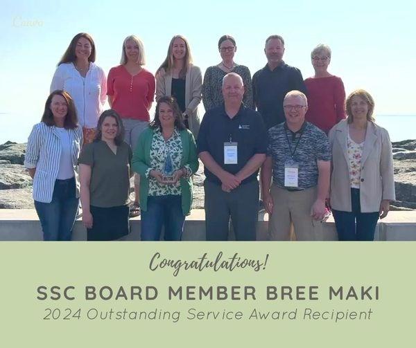 This summer, SSC Board Chair Bree Maki was the recipient of the Minnesota Service Cooperatives Outstanding Service Award. This award honors individuals who exemplify leadership and the contributions that further the mission of their service cooperative. This description perfectly fits Bree, who is a terrific champion of SSC’s mission and vision.