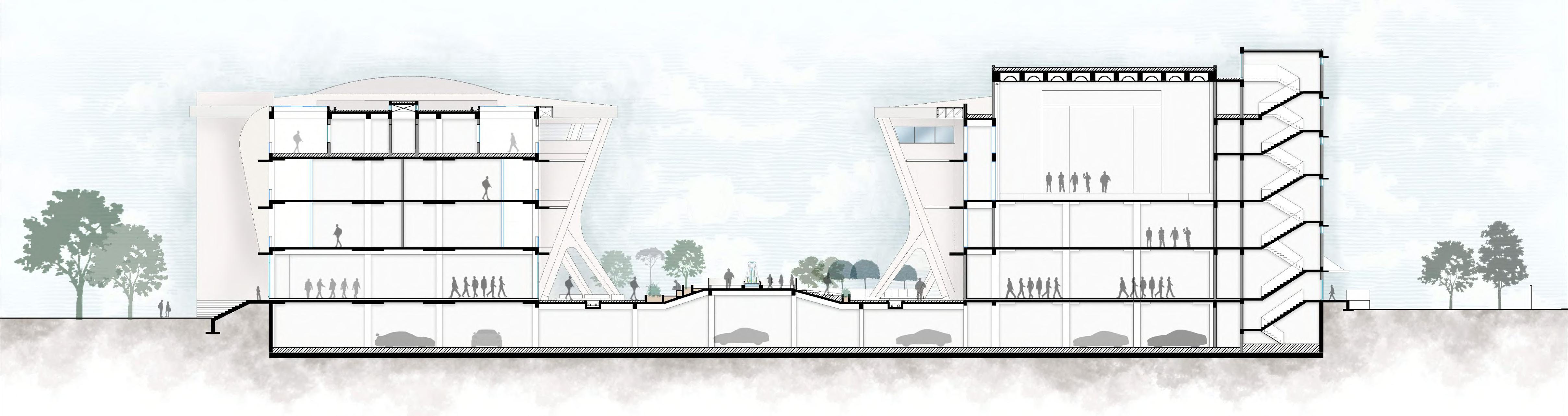 -2.7m lvl +1.65m lvl +6m lvl +10m lvl +14m lvl +17.3m lvl +21.3m lvl LIBRARY MULTI-PURPOSE HALL LOBBY COMMON LOBBY ROOF-TOPSOLAR PANELS MULTI-PURPOSE BLOCK 1 2 4 ALLDMARE IN M 1 2 4 ALLDMARE IN M