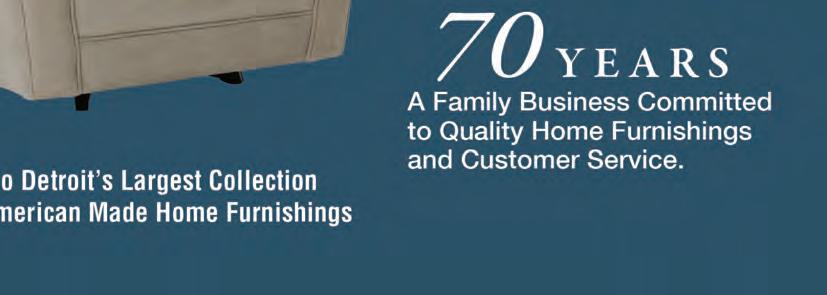 Page 38 • October 12 — November 8, 2023 GROSSE ILE GRAND LIKE US ON FACEBOOK –GROSSE ILE GRAND WHITE FURNITURE 77 TH ANNIVERSARY SALE Monday: 9:00am - 5:30pm Tuesday: 9:00am - 5:30pm Wednesday: 9:00am - 5:30pm Thursday: 9:00am - 5:30pm Friday: 9:00am - 8:30pm Saturday: 9:00am - 5:30pm WHITE FURNITURE 3025 Biddle Avenue Wyandotte, MI 48192 734-282-2155 www.whitefurniture.com www.facebook.com/whitefurniture Beautyrest Medium Mattress 10 year warranty Twin $399 - Full $499 Queen $599 - King $749 800 individually pocketed coils reduce motion transfer from your partner. Tyler Firm Mattress 10 year warranty Twin $249 - Full $349 Queen $399 - King $549 Helical14.5-gauge coils. Heavier concentration of coils in the lumbar zone of the mattress. Blue Lagoon Firm Mattress Twin $599 - Full $679 Queen $699 - King $699 Designed in the USA & made Downriver. 825 individually wrapped coils. Serta’s Best edge Technology 10 year warranty Sofa $999 Sofa $899 Sofa $1199 Loveseat $1169 Sofa $899 Loveseat $869 Sofa $899 Loveseat $869 Loveseat $969 Loveseat $869 WHITE FURNITURE HAS BEEN SERVING SOUTHEAST MICHIGAN FOR 77 YEARS! Lifetime Fabric Protection Plan Covers stains, punctures, rips & cigarette burns. $99 Covers all fabric furniture on an order. Valid October 2023. As always some exclusions apply, see plan documents for full details. 12 months Interest Free Plan code 5362 Valid October 2023. With credit approval by Wells Fargo. No minimum purchase. See store for details. Special orders require a deposit Free delivery! Valid October 2023. Valid on any item in the store or any special order with a minimum $300 purchase. Within 20 miles. All of these sofas are in stock. They are available to order in 500 fabrics. 50 fabrics at the sale prices shown. Several firmness options. Lifetime warranty frame & seat springs 10 year warranty on seat cushions.